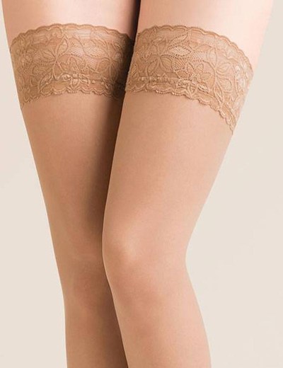Классические чулки, плотностью 15 den. Выполнены из прочного полупрозрачного нейлонового полотна без силиконовой фиксации. С прозрачным мыском и формованной пяткой. Широкая кружевная резинка декорирована нежным цветочным мотивом.