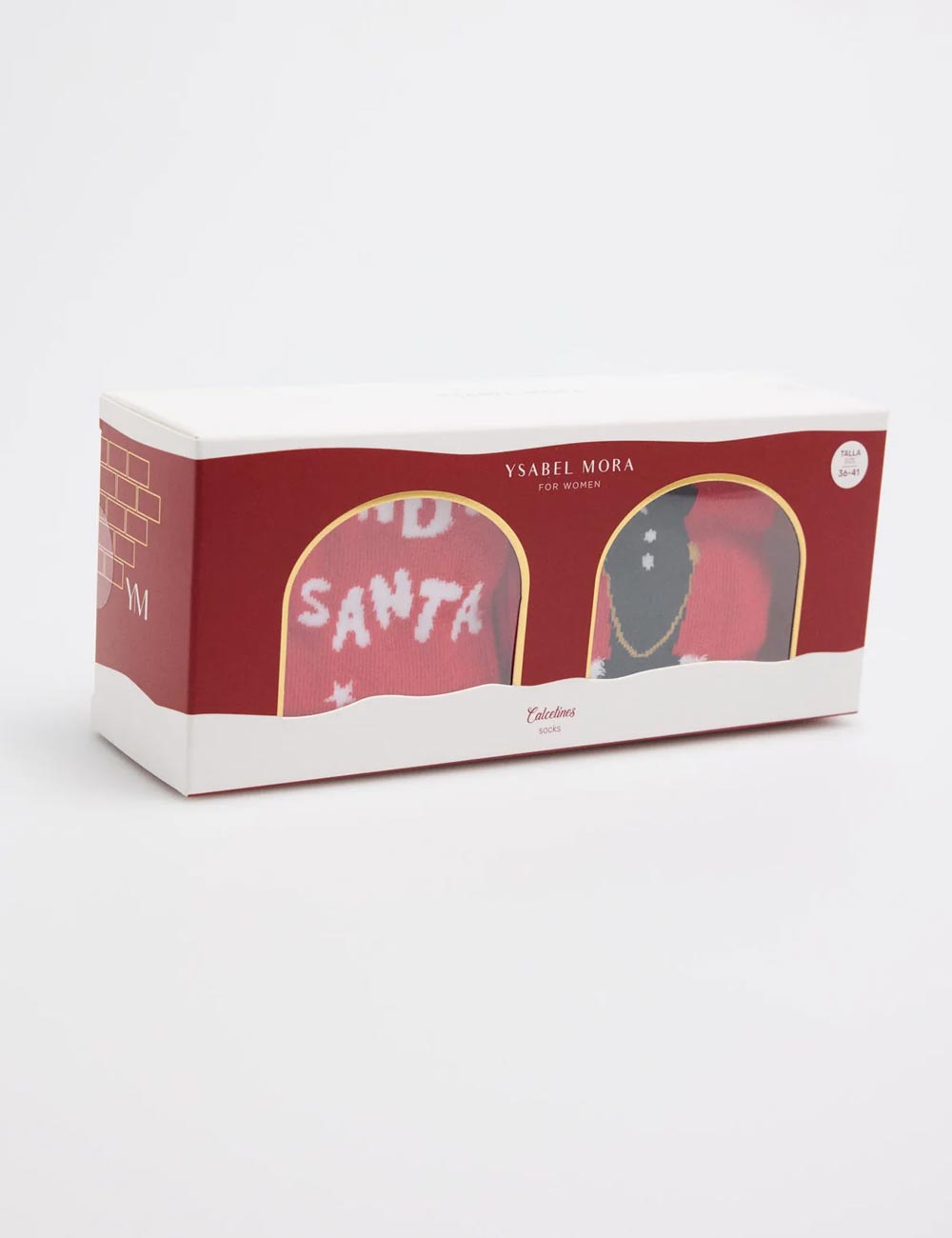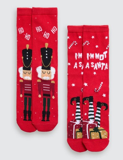 Мужские носки в наборе из 2-х штук от испанского бренда Ysabel Mora модель 12965 из новогодней коллекции CHRISTMAS. Выполнены из мягкого хлопка в красном цвете с оригинальными тематическими принтами.