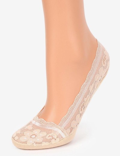 Эластичные кружевные следки с цветочным узором STOPKI LACE Z33 от бренда Marilyn в светло-бежевом цвете. Бесшовная отделка, что обеспечивает дополнительный комфорт при ношении. Не соскальзывают благодаря силикону по бокам и на пятке. Хлопковая вставка на стопе.