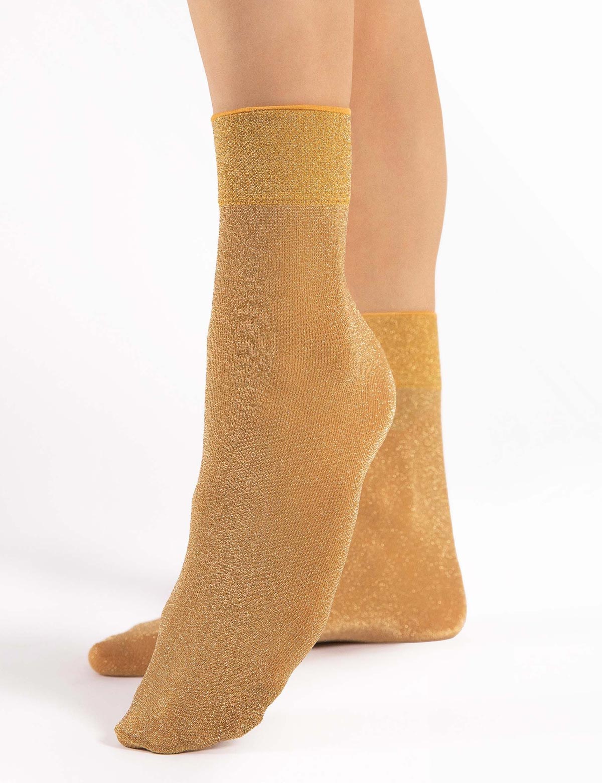 Блестящие носки из микрофибры 1178/G BRILLO польского бренда Fiore плотностью 60 den выполнены по технологии 3D с добавлением золотистого люрекса.