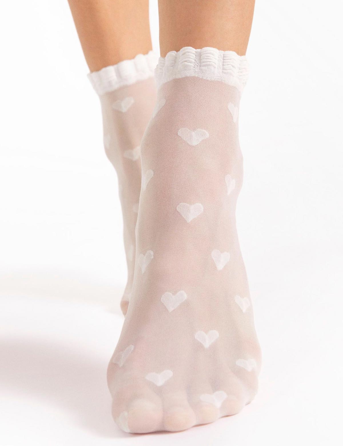 Белые носочки 1189/G KOKORO польского бренда Fiore плотностью 20 den украшены узором из сердец и резинкой с оборкой. Они добавляют нотку женского очарования, а их высокое качество гарантирует, что вам не придется беспокоиться о комфорте.