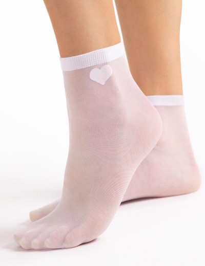 Полупрозрачные носки 1191/G CUPIDO польского бренда Fiore плотностью 20 den в белом цвете с очаровательным сердечком на щиколотке - отличный способ подчеркнуть свой стиль.