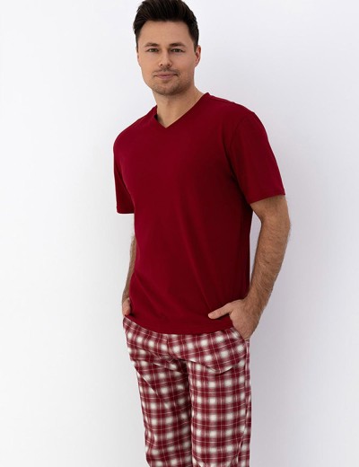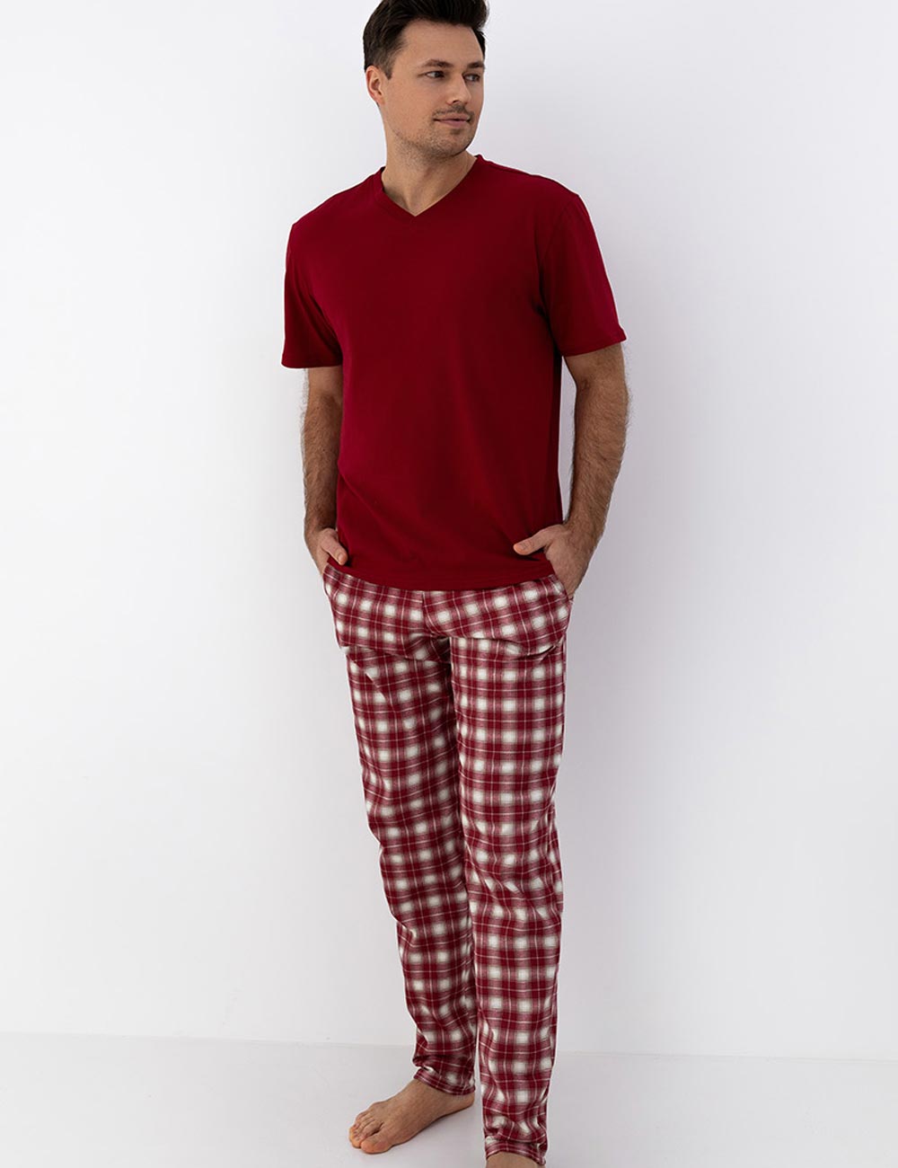 Мужская пижама MATTHEW от польского бренда Sensis выполнена из хлопка, состоит из однотонной футболки темно-красного цвета с короткими рукавами и клетчатых брюк. Это не только комфортный элемент домашнего гардероба, но и отличный способ для создания праздничной и уютной атмосферы.