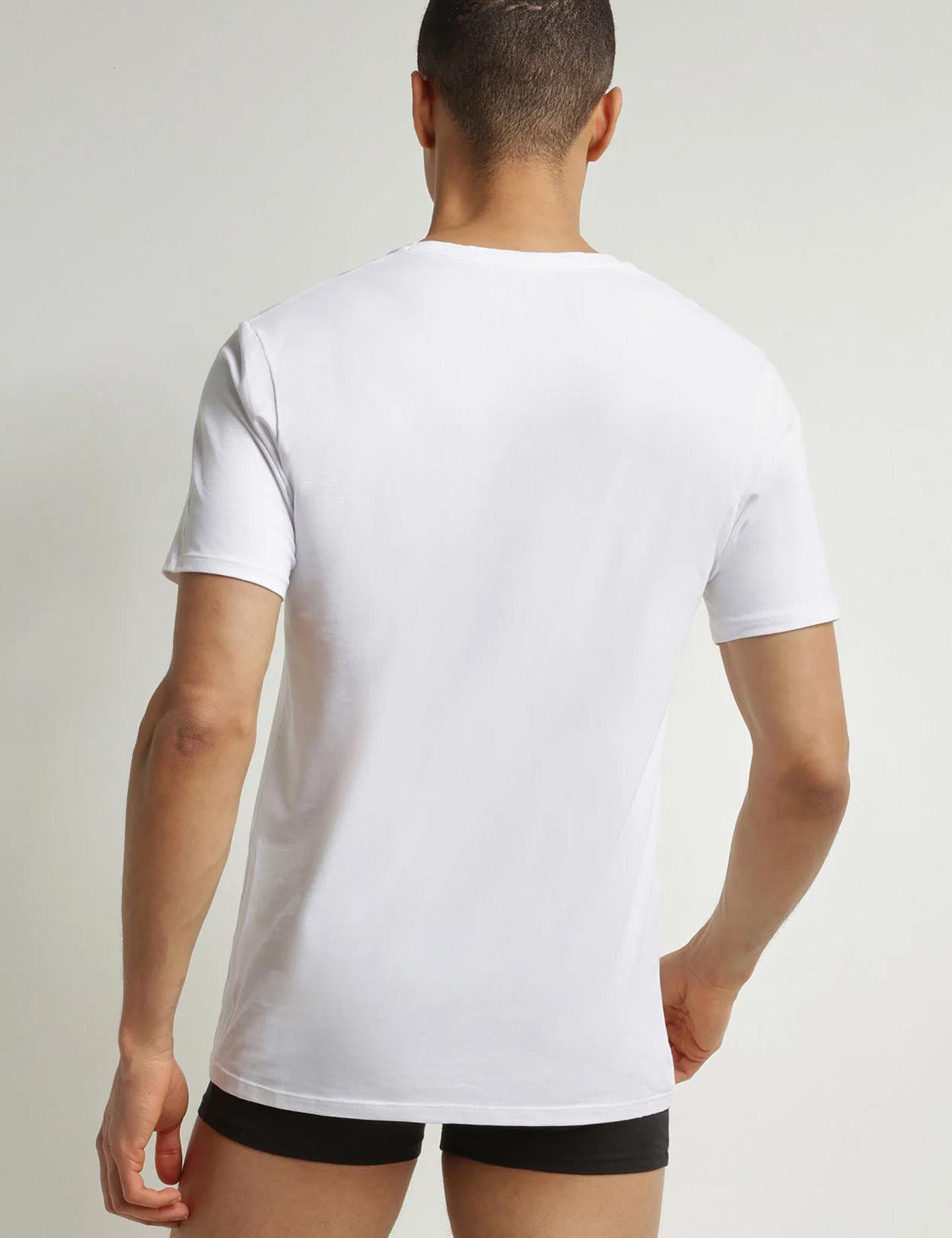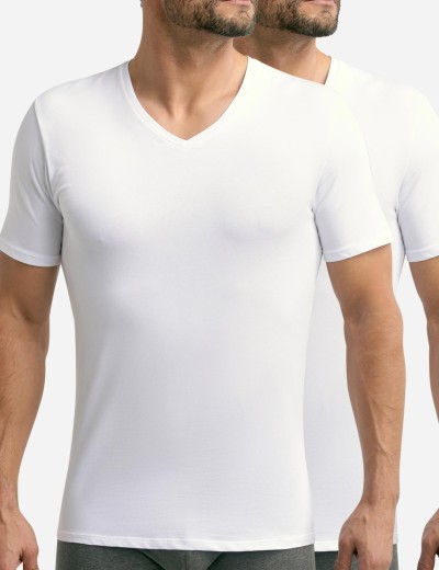 Сет из 2-х классических белых футболок Dim GOOD модель 0DI5 из органического хлопка — незаменимая вещь в мужском гардеробе. Она пропускает воздух, не вызывает раздражения и устойчива к стирке. V-образный вырез придает современный вид любому образу: футболка стильно выглядывает из-под свитера и отлично смотрится сама по себе.