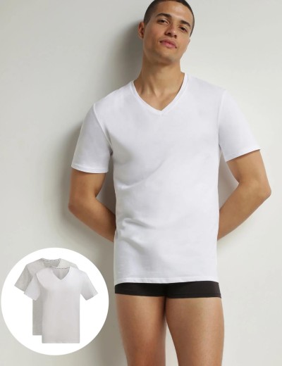 Сет из 2-х мужских футболок Dim GOOD модель 0DI5 из органического хлопка в двух цветах - белый и серый - незаменимая вещь в мужском гардеробе. Она пропускает воздух, не вызывает раздражения и устойчива к стирке. V-образный вырез придает современный вид любому образу: футболка стильно выглядывает из-под свитера и отлично смотрится сама по себе.
