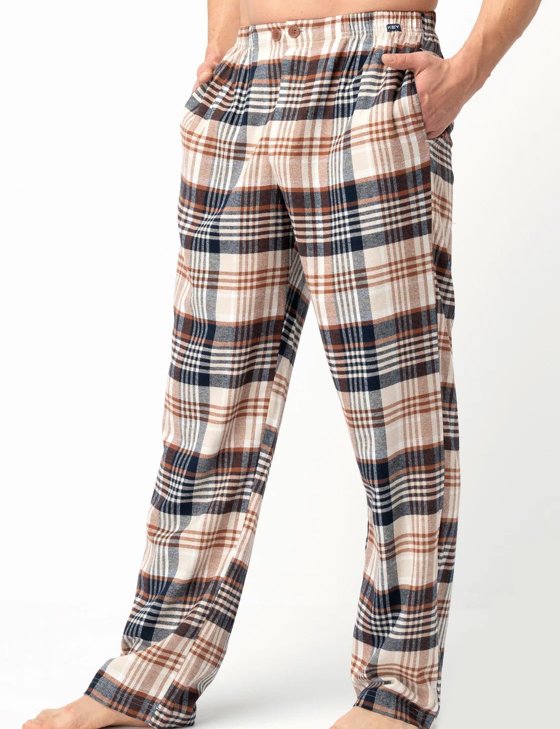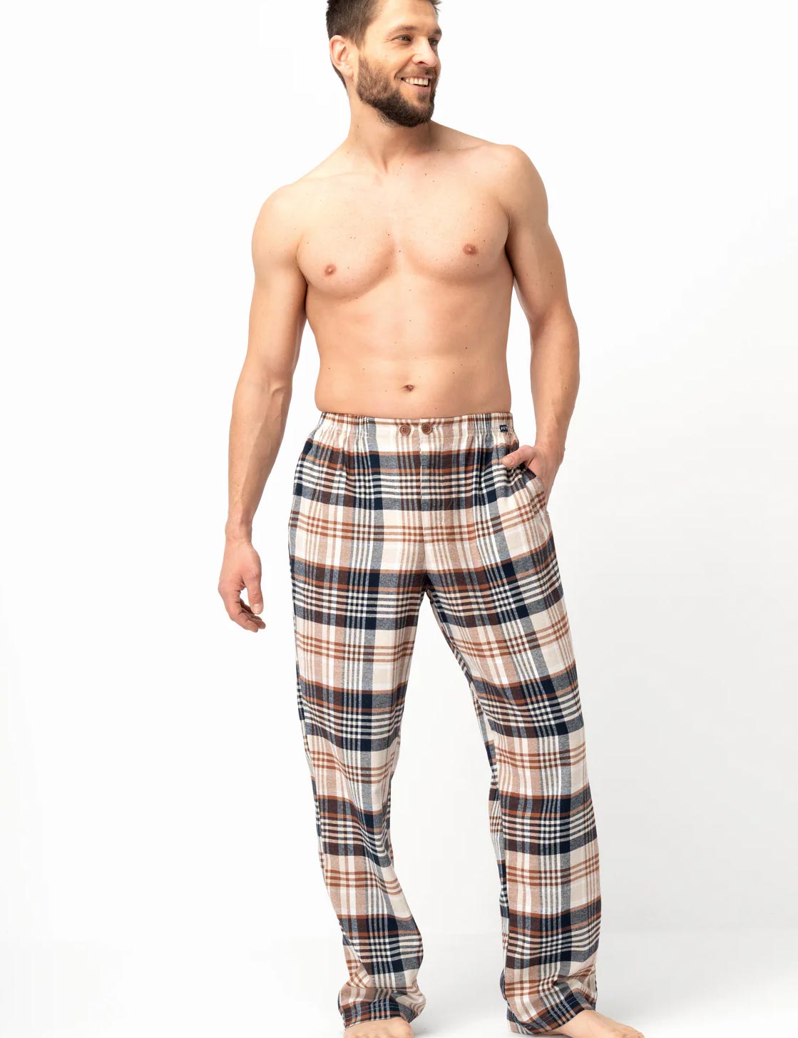 Мужские домашние штаны от польского бренда Key модель MHT 431 выполнены из мягкой хлопковой фланели. Оттенки коричневого и графитового в сочетании с теплым бежевым создают расслабляющее настроение. Это отличный выбор для комфортного отдыха и уютного времяпрепровождения дома.