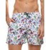 Пляжные шорты от румынского бренда Jolidon модель B645JI выполнены из легкой быстросохнущей ткани бледно-голубой расцветки с забавным принтом.