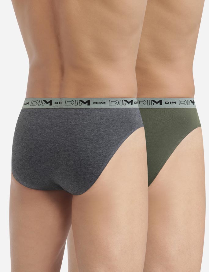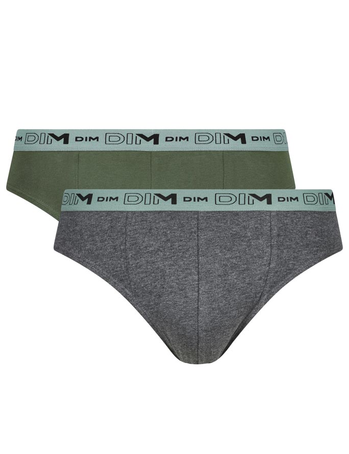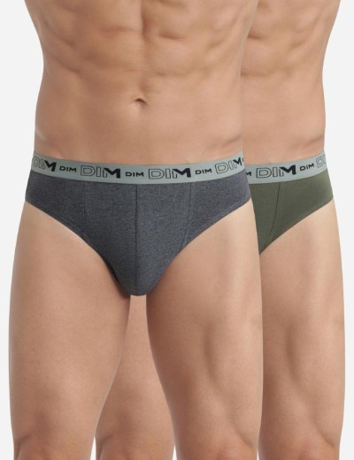 Мужские трусы слипы от французского бренда Dim модель 0EAZ из коллекции COTON-STRETCH в комплекте из 2-х штук разных цветов (серый и хаки). Базовое предложение из эластичного хлопка, который обеспечивает комфорт и безупречный стиль.