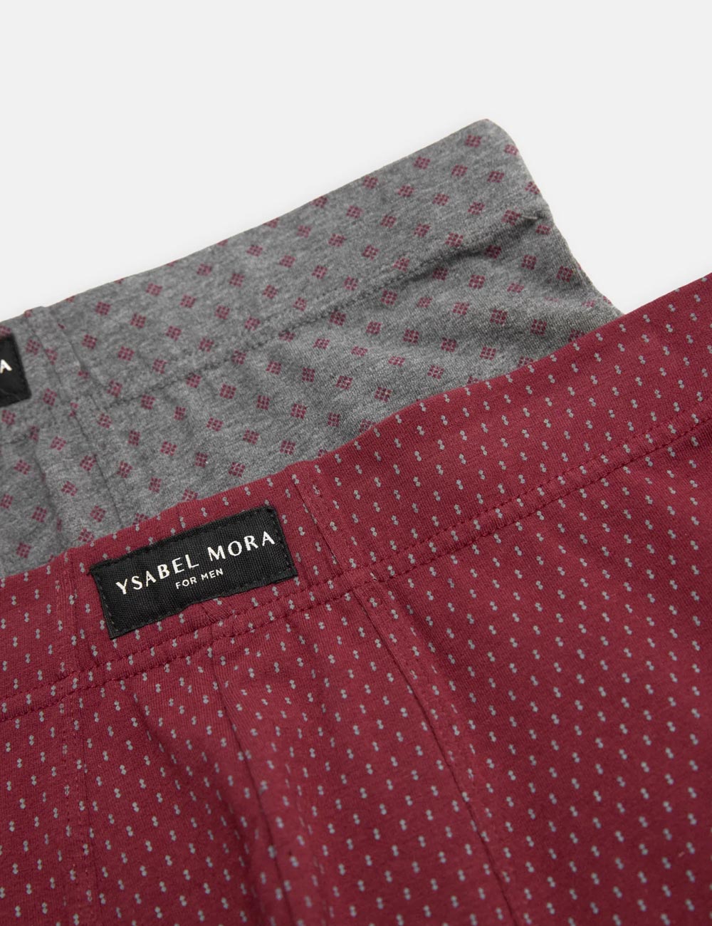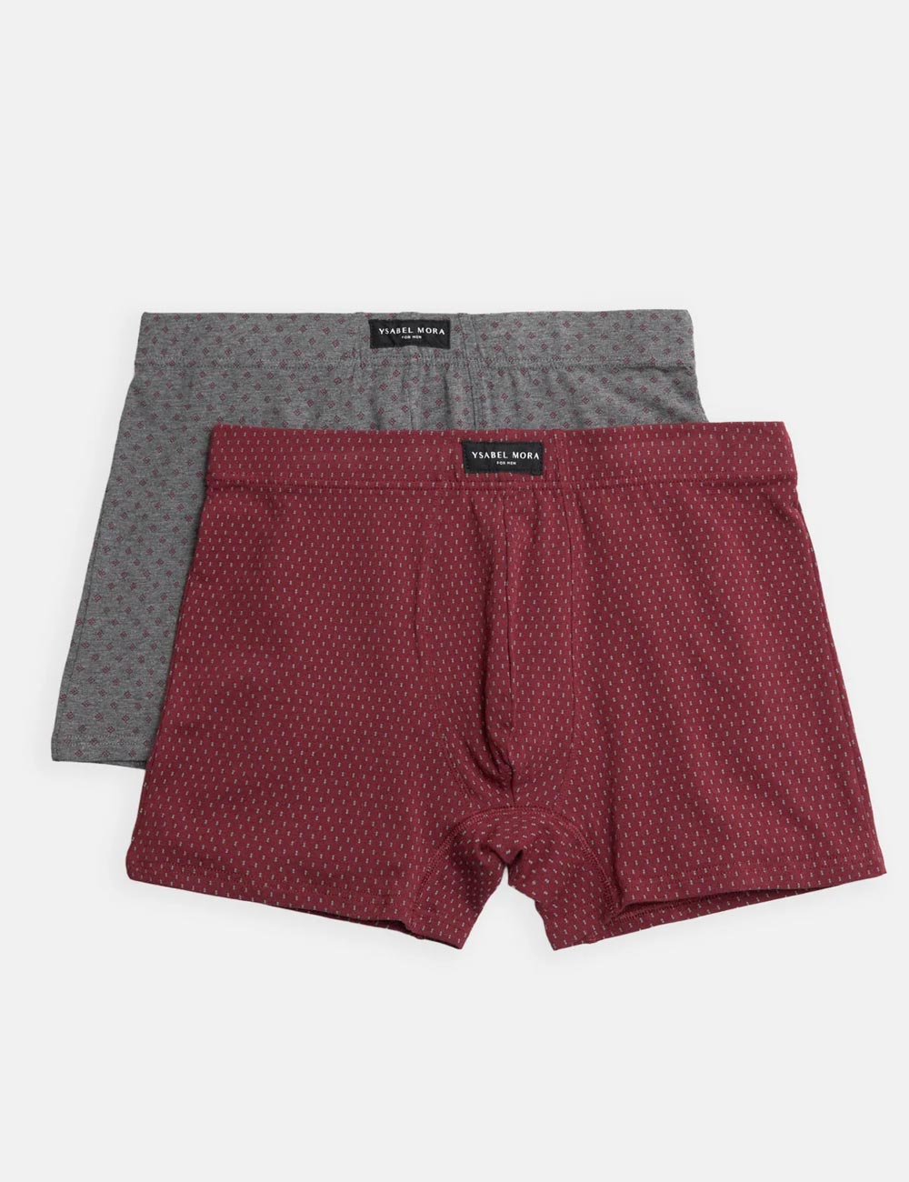 Облегающие трусы боксеры от испанского бренда Ysabel Mora модель 20425, выполнены из принтованного хлопкового полотна. Набор из 2-х штук - бордовой и серой расцветки.