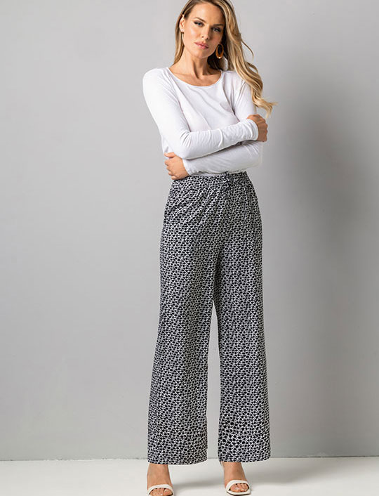 Брюки женские Sielei GS18 коллекции DAILY из легкой тканой вискозы с уникальным черно-белым цветочным принтом станут стильной основой вашего образа. Свободный крой дарит полную свободу, а нежная дышащая ткань обеспечивает исключительный комфорт. Эта практичная и элегантная модель идеально подходит для повседневных дел, домашнего отдыха или летних прогулок.