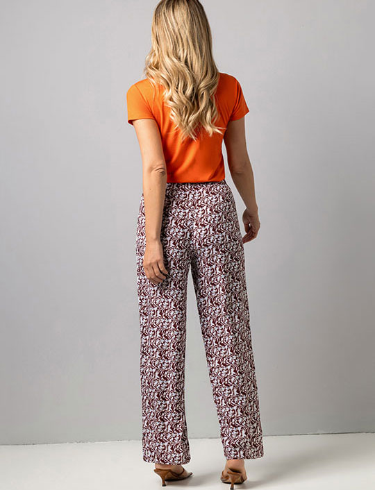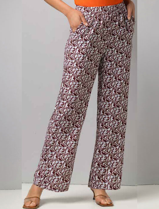 Брюки женские Sielei GS20 коллекции DAILY из струящейся вискозы украшены абстрактным принтом в оттенке махагон. Свободный силуэт с широкими штанинами и карманами дарит легкость в каждом движении. Нежная дышащая ткань приятна к телу, а эластичный пояс обеспечивает комфортную посадку, создавая элегантный и расслабленный образ для отдыха или прогулок.