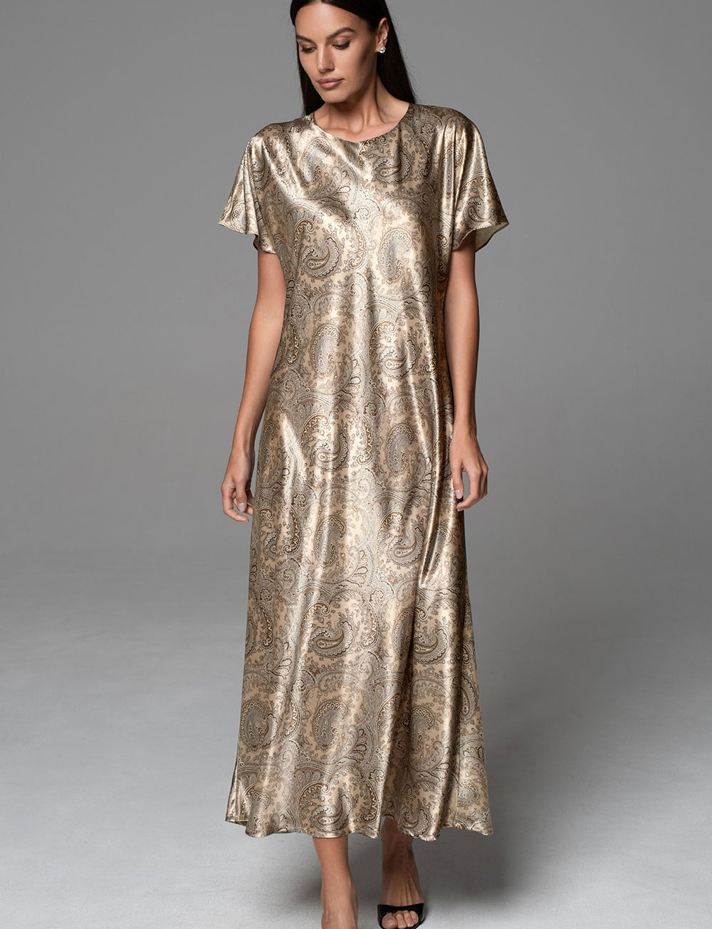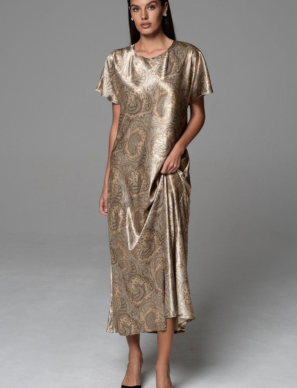 Длинная туника Mia-Amore DALIA модель 4808 сочетает в себе свободный силуэт и женственную элегантность. Мягкий натуральный смесовый шёлк приятен телу, а завязки на спинке позволяют подчеркнуть ширину выреза. Теплая бежевая палитра и принт пейсли создают атмосферу уюта и расслабления.