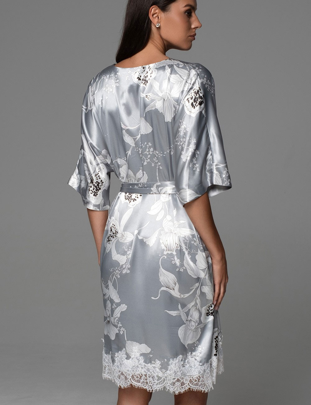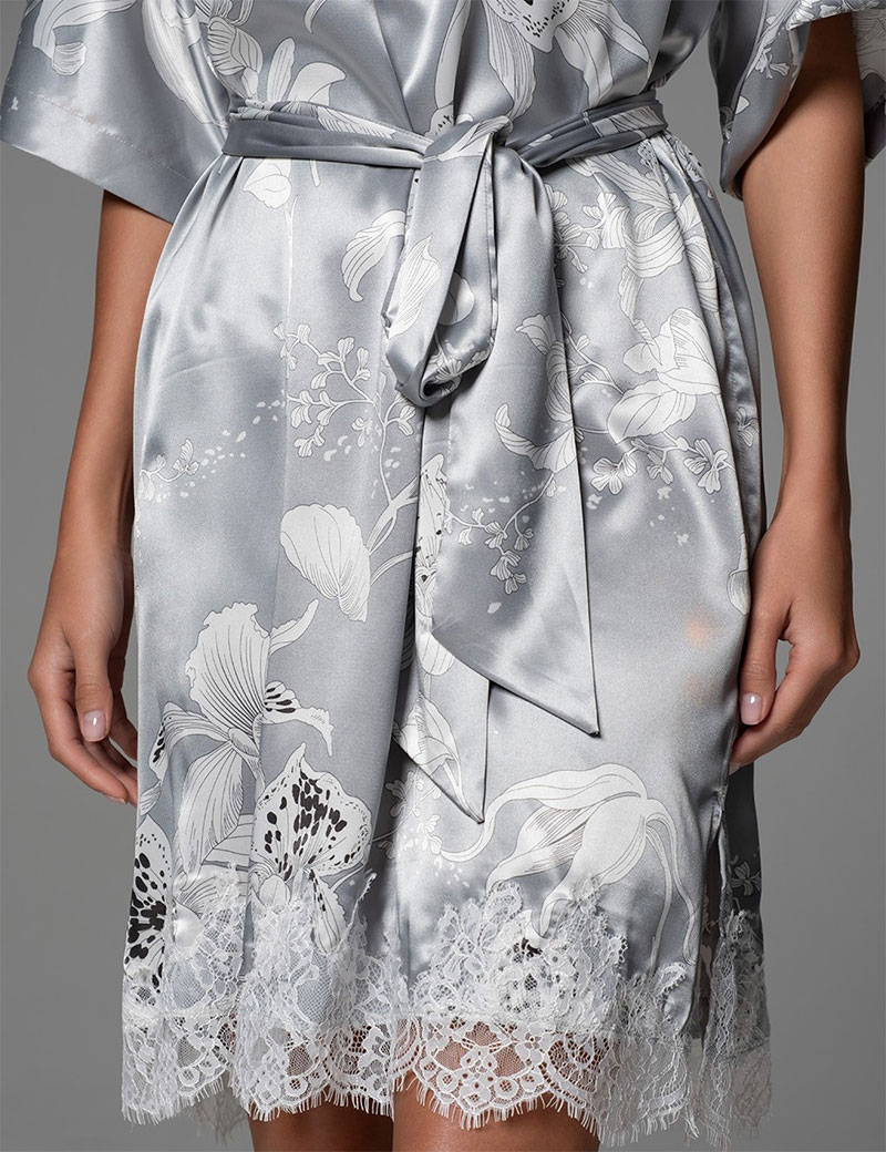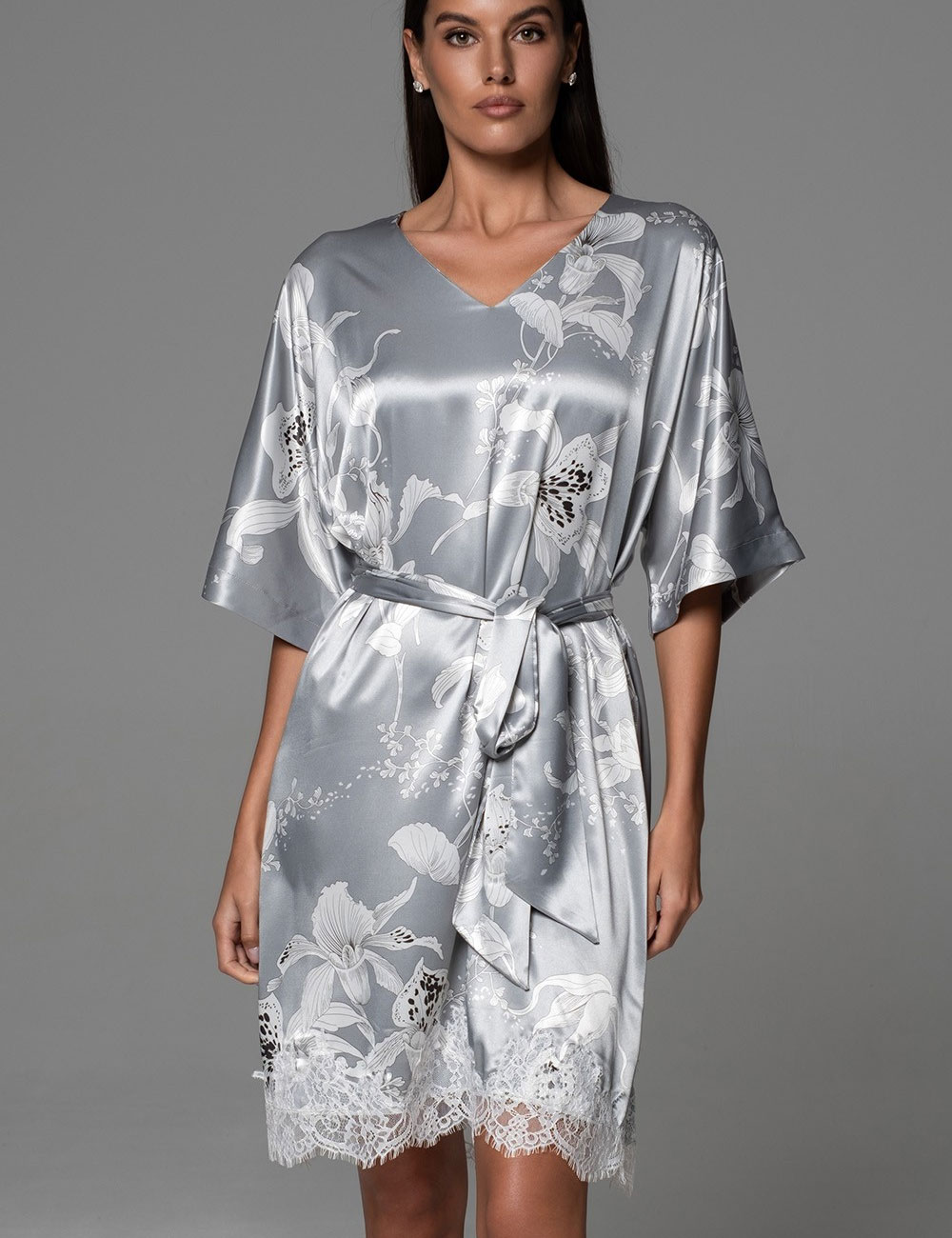 Туника домашняя ARABEL 4357 в цвете серебра — это нежный натуральный смесовый шёлк с белым контурным цветочным принтом, словно приглашение к спокойному дню в облаке комфорта. Кружевной низ добавляет воздушность и лёгкую эйфорию, превращая повседневный отдых в момент женственности. Идеально для тех, кто ценит уют от Mia-Amore!