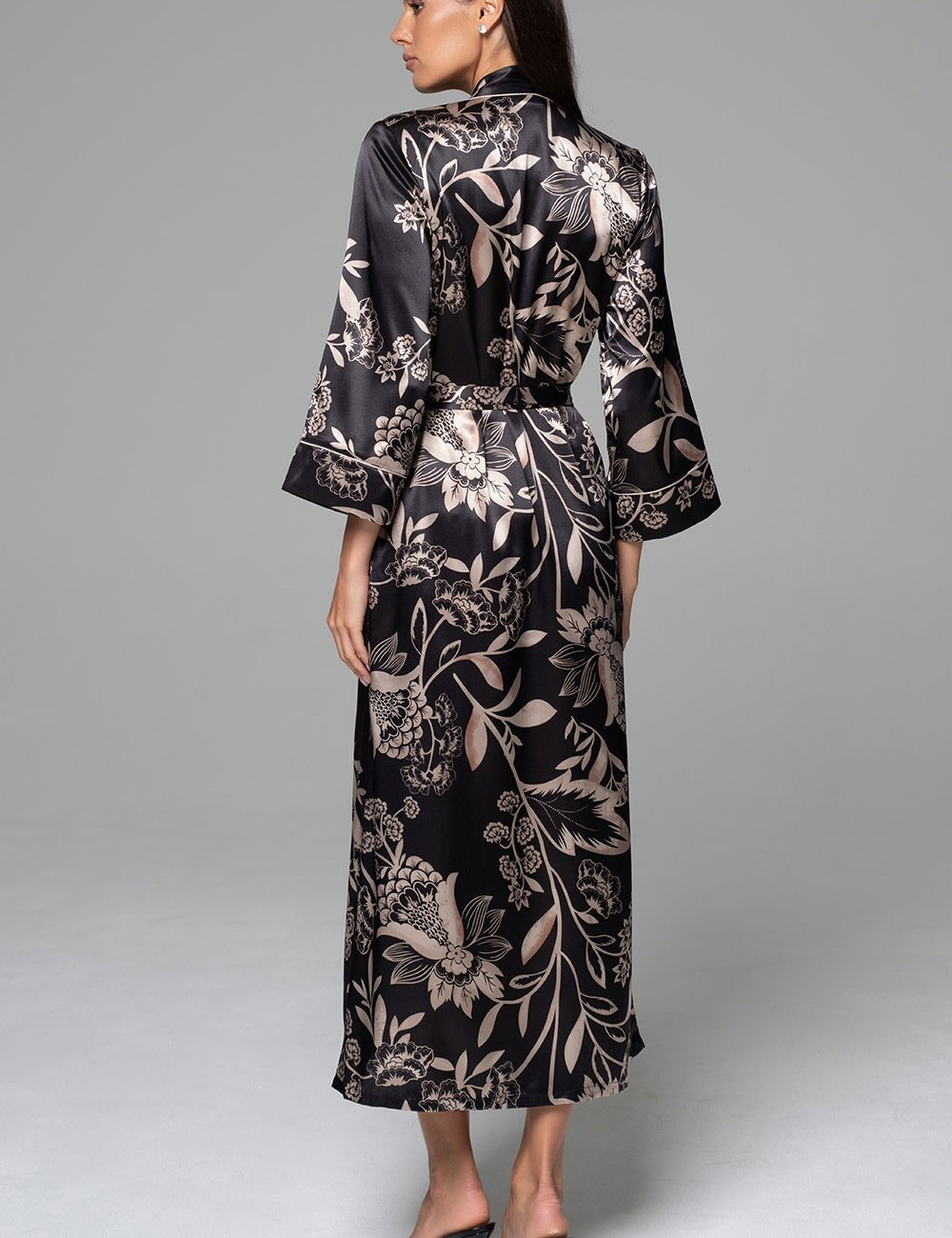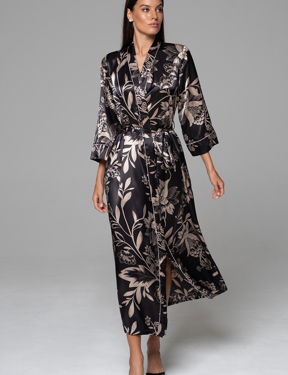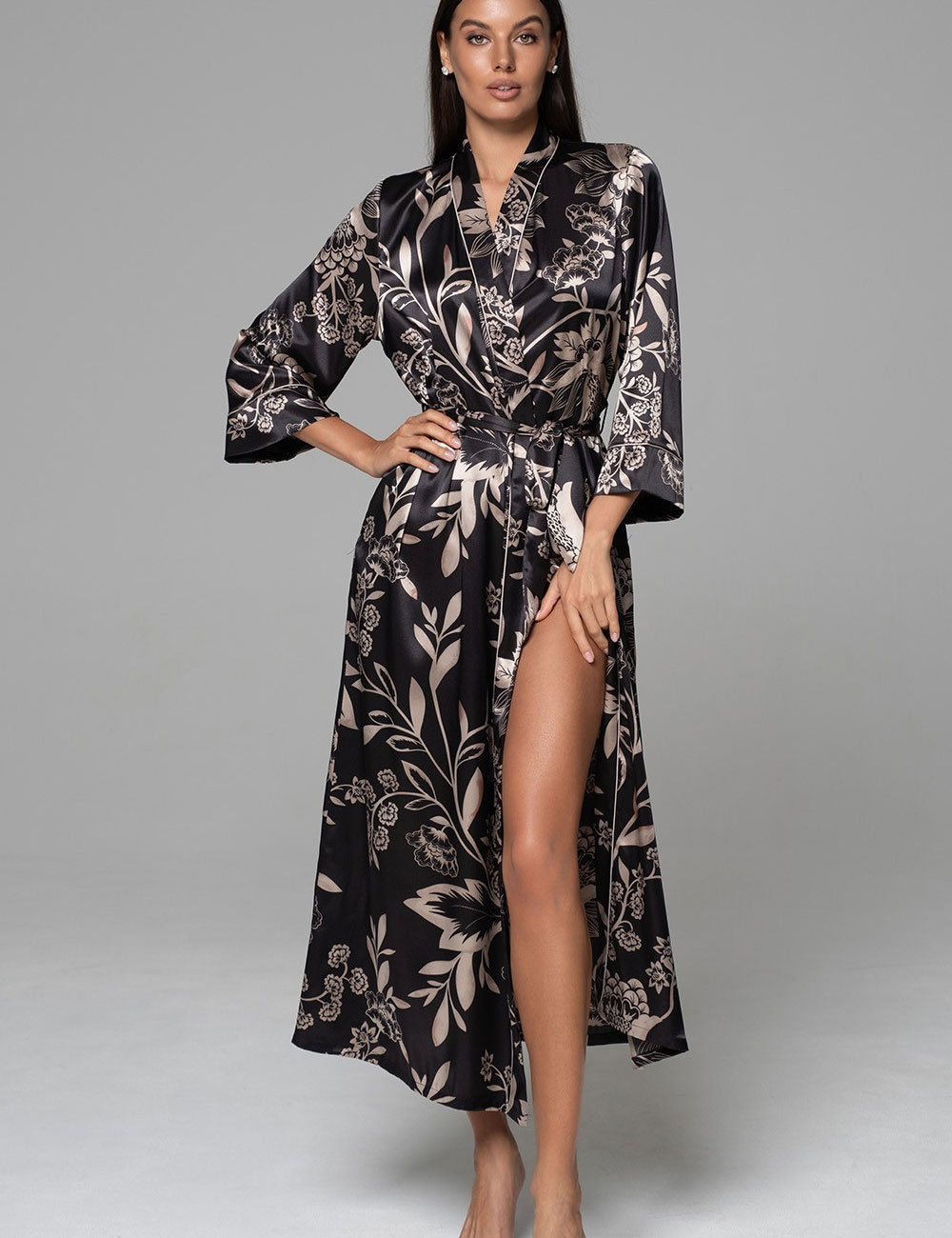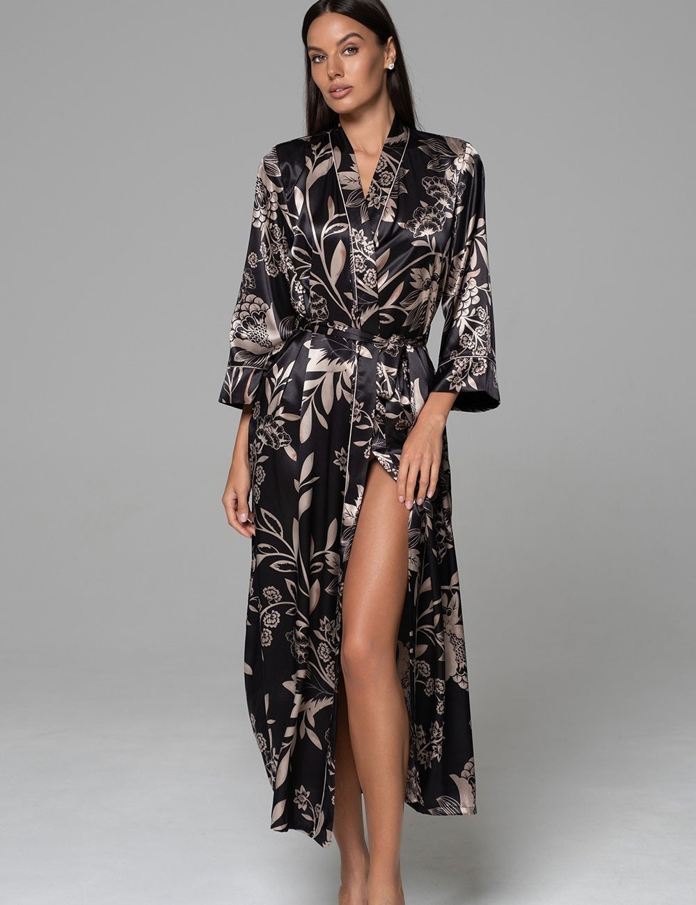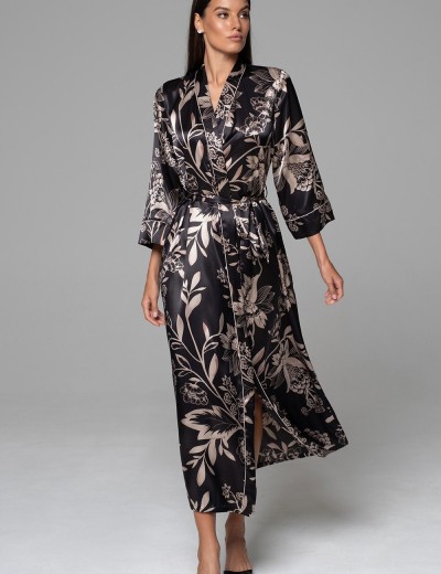 Длинный шёлковый халат Mia-Amore CARMINA 4849 черный
