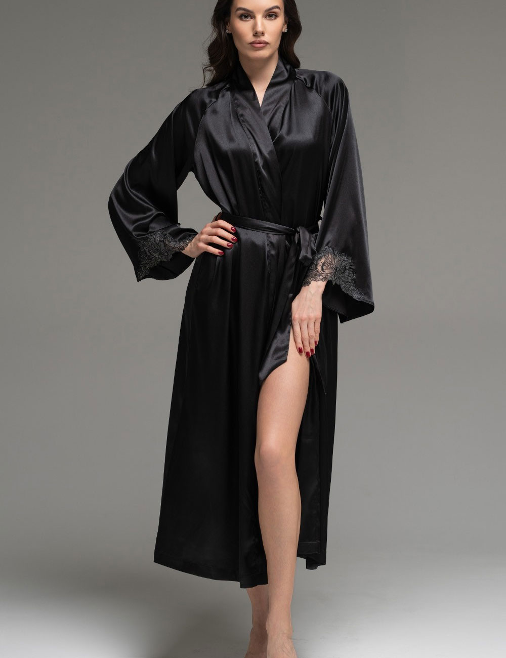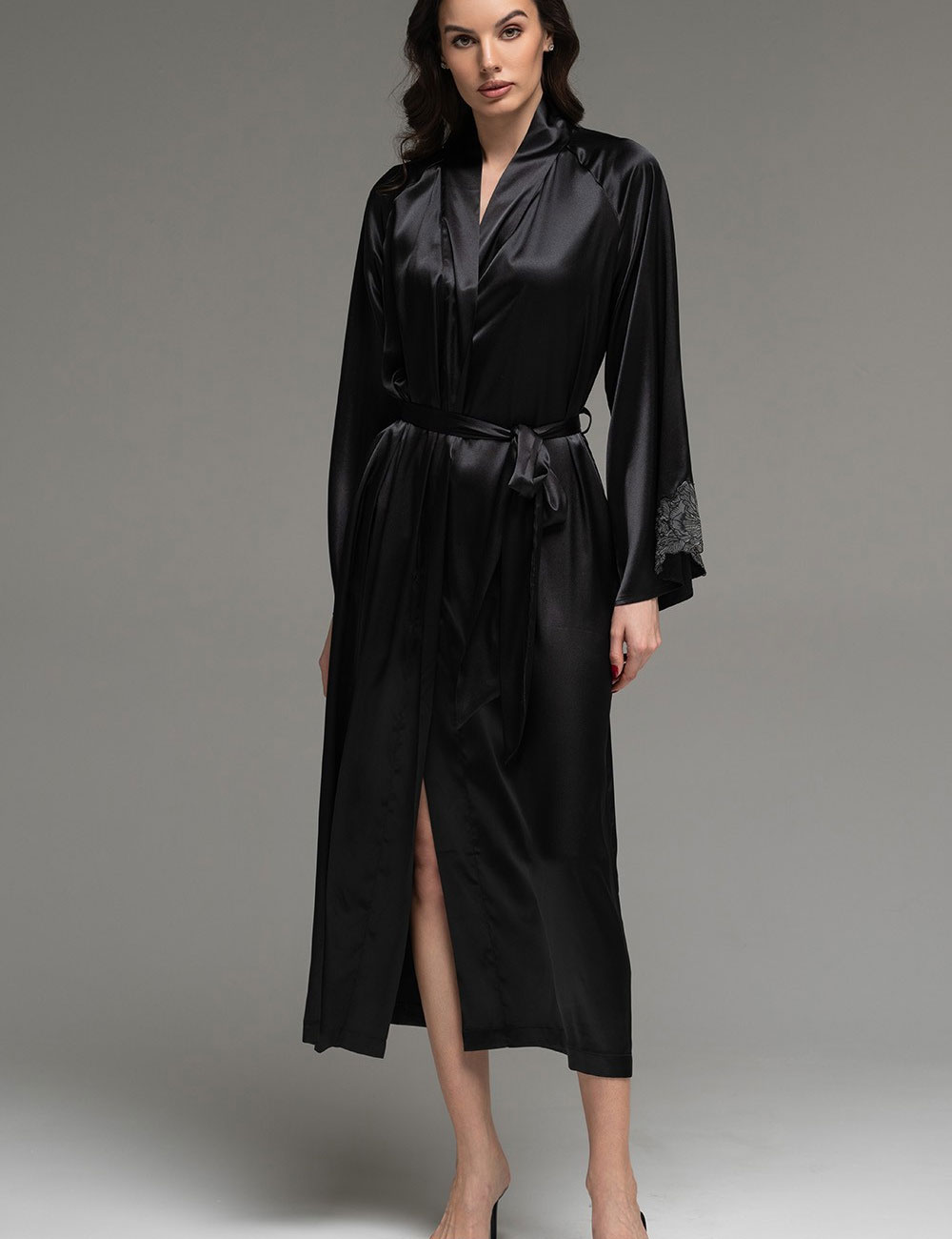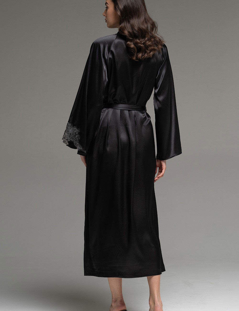 Длинный шёлковый халат Mia-Amore LILIROSE 4599 черный