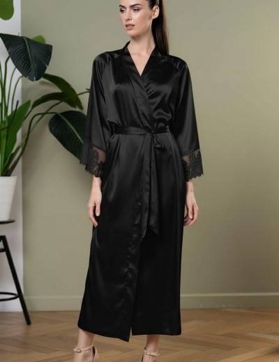 Длинный шелковый халат Mia-Amore WHITE SWAN 3559 черный