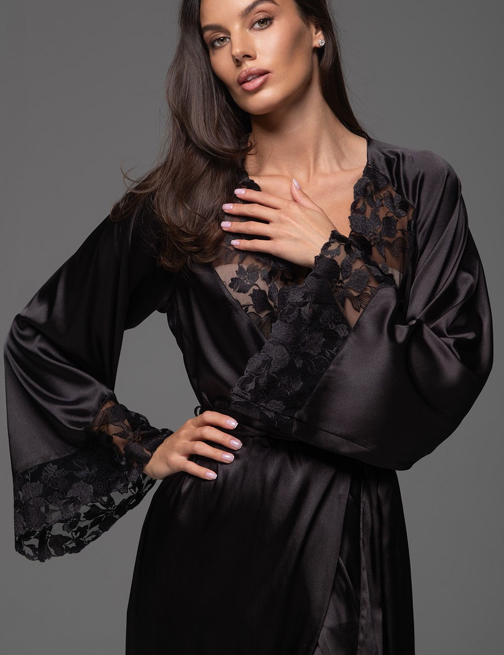 Элегантный женский пеньюар Mia-Amore 4749 из коллекции MERLOT — воплощение утончённой сексуальности в нежном смесовом шёлке с кружевными вставками. Глубокий черный цвет, струящийся силуэт и длина макси создают атмосферу загадочности и страсти, идеально подходящую для особых вечеров.