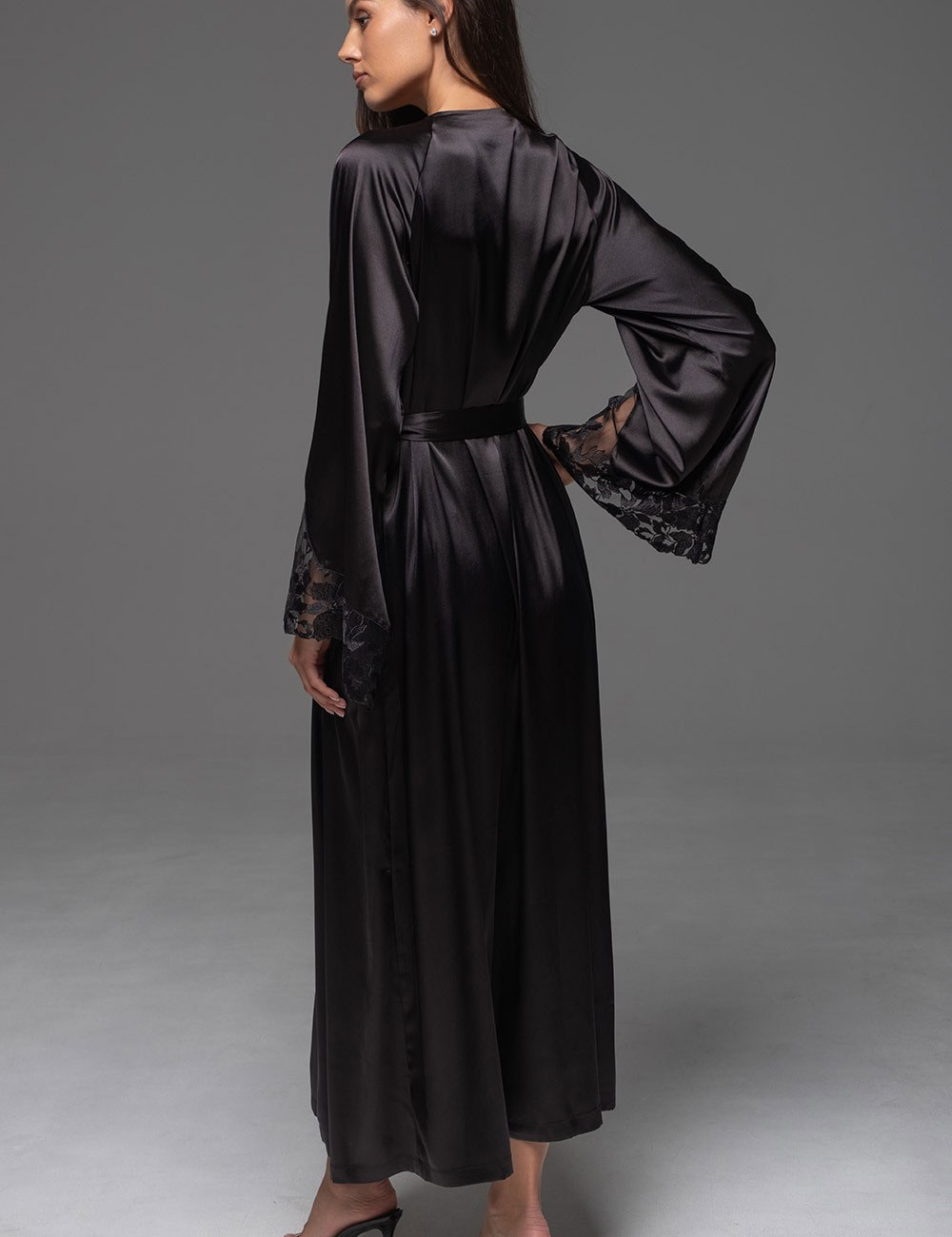 Длинный шёлковый пеньюар Mia-Amore MERLOT 4749 черный