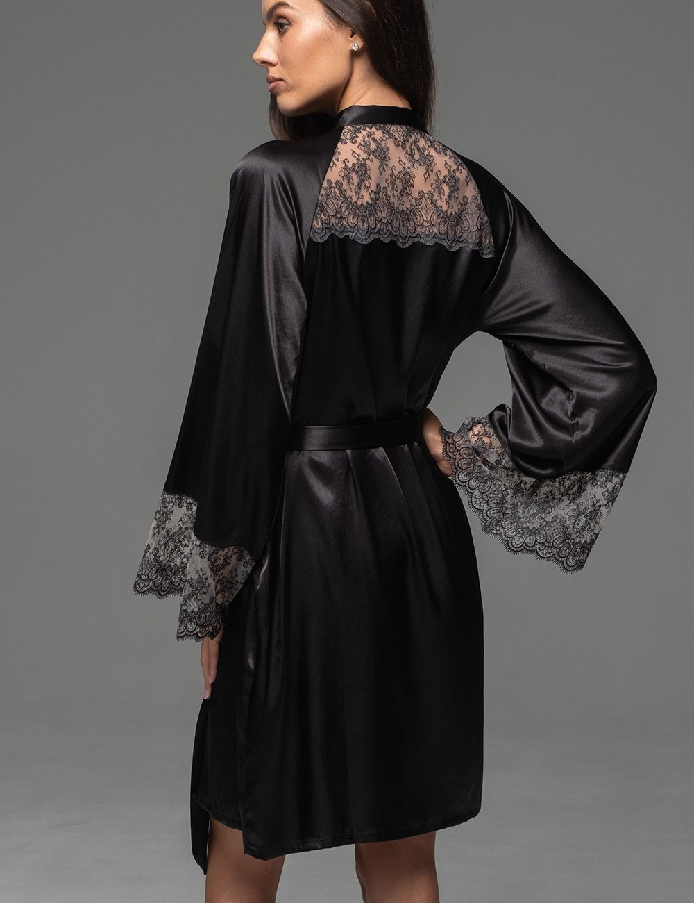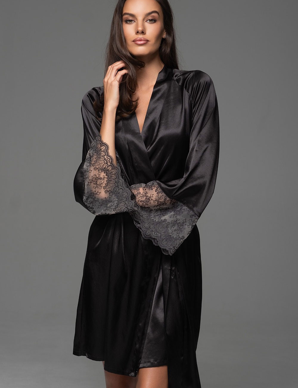Халат из шёлка и кружева Mia-Amore ADELAIDA 4703 черный