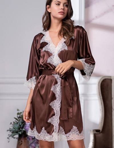 Короткий шелковый халат Mia-Amore MARILIN 3103 шоколадного цвета — выбор любительниц изысканного комфорта. Лёгкий и воздушный, с утончённым кружевным декором и вырезанной кромкой, он дарит удобство круглый год благодаря мягкому смесовому шёлку.