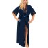 Модель «на запах» завязывается спереди на широкий атласный пояс. По краю борта и низу рукавов - широкое кружево. Изюминка модели: V-образный вырез на спине.