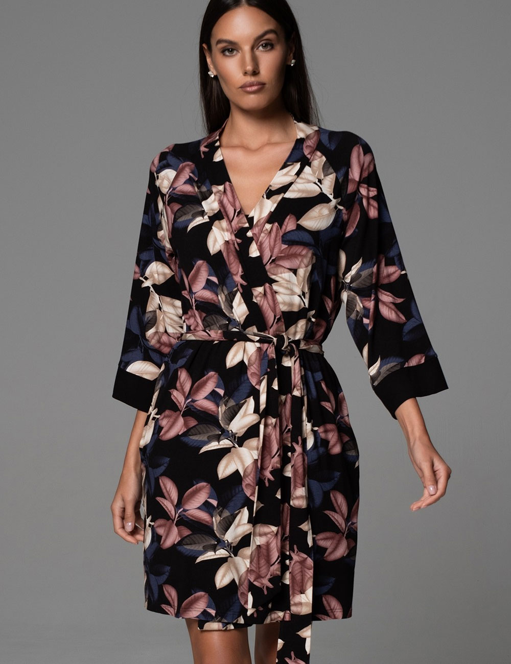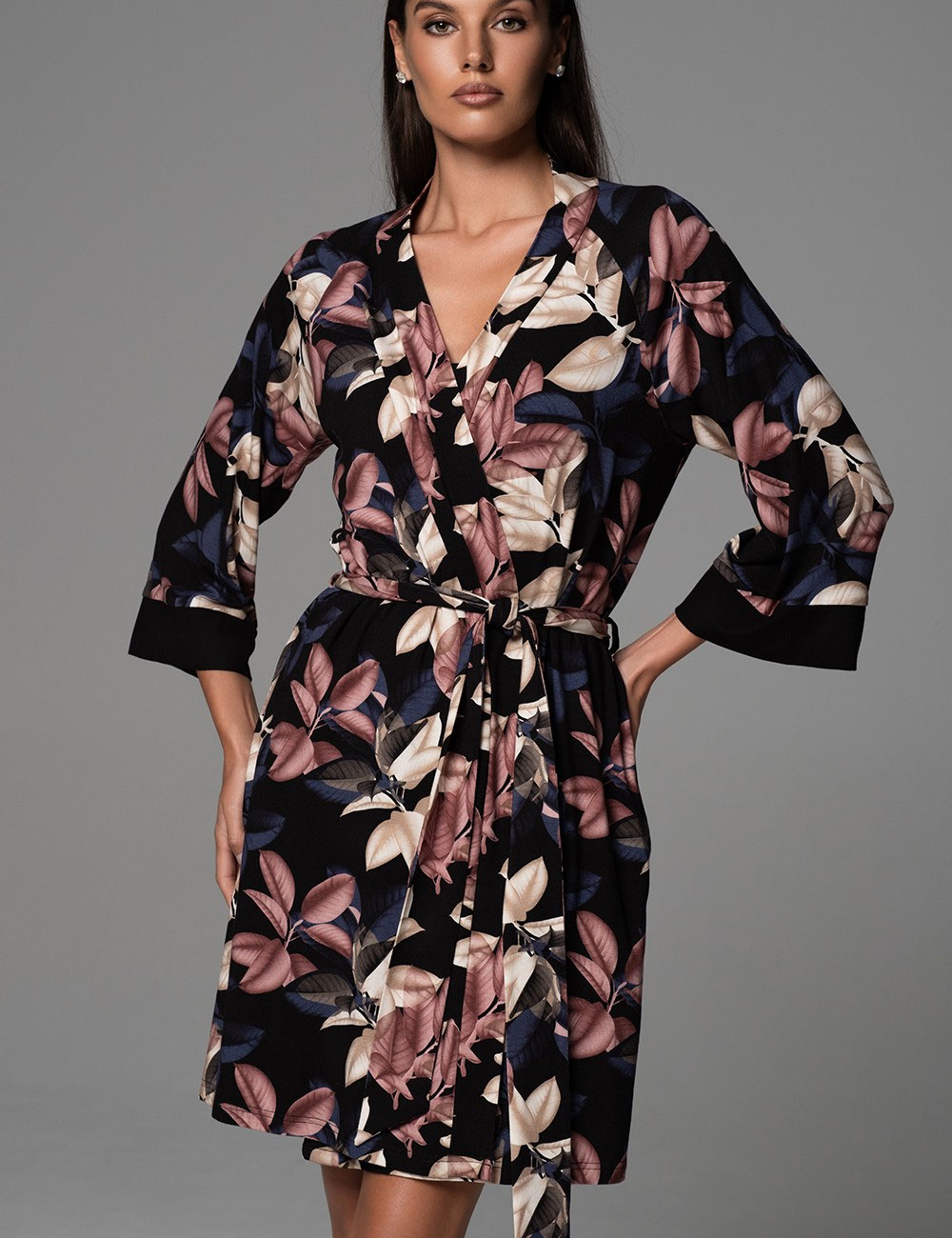 Запашной халатик DAIANA 5573 от бренда Mia-Amore – элегантный компаньон из эластичного вискозного полотна с принтом и черной отделкой. Короткая длина, дышащий натуральный материал: идеален для спокойного уединения с книжкой и чаем, словно тихий уголок галактики.