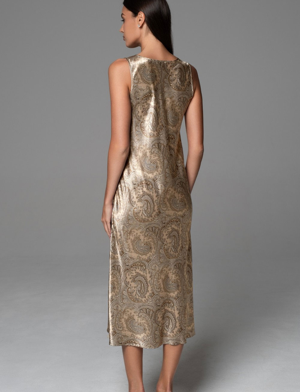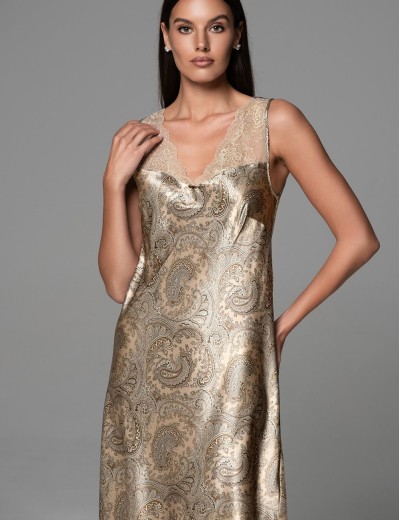 Длинная сорочка для сна DALIA 4815 от Mia-Amore завораживает своей элегантностью. Широкие бретели и кружевное декорирование придают образу нежность, а шелковая натуральная основа обеспечивает комфорт. Принт пейсли в бежево-коричневой палитре добавляет глубину и стиль каждому моменту отдыха.