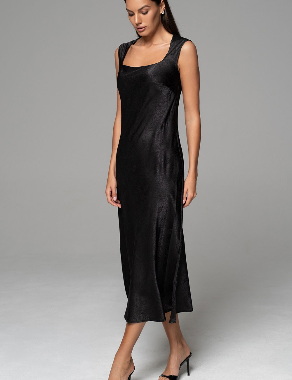 Элегантная длинная сорочка Mia-Amore ANORA модель 4801 на широких бретелях – в выразительном чёрном цвете. Сшита из смесового натурального шёлка с жаккардовым узором. Ткань ласкает кожу, дарит свободу и уют – просто рай для отдыха. Идеально для сна или романтического вечера.