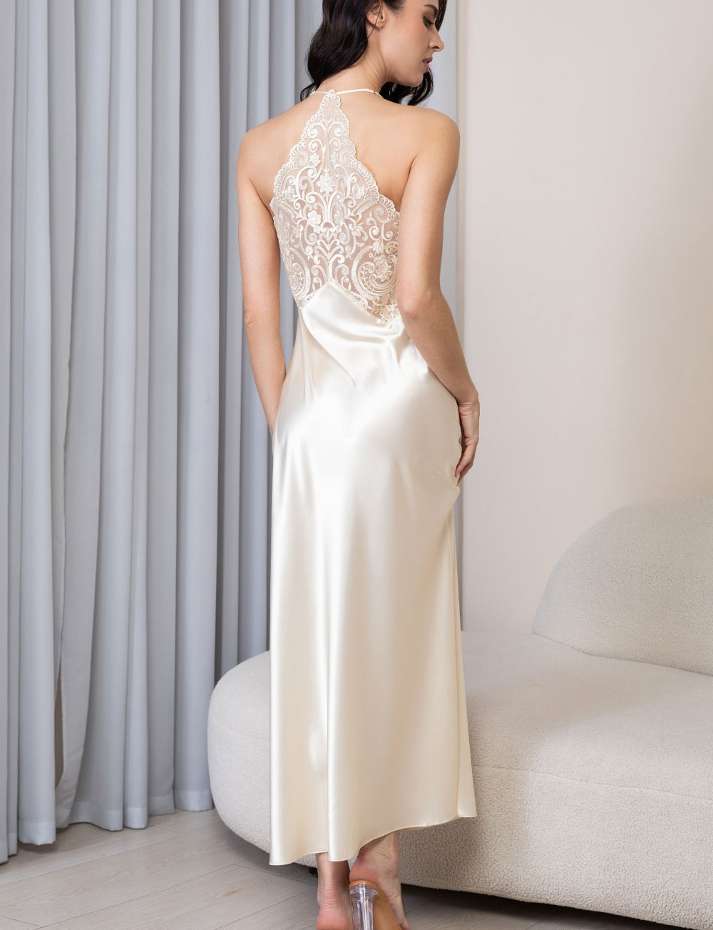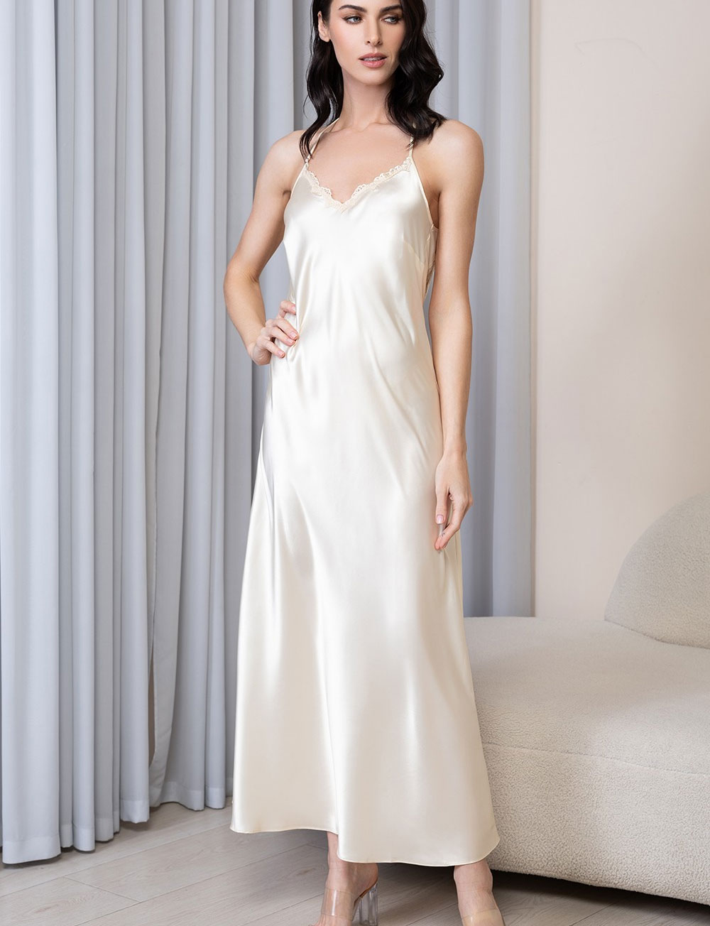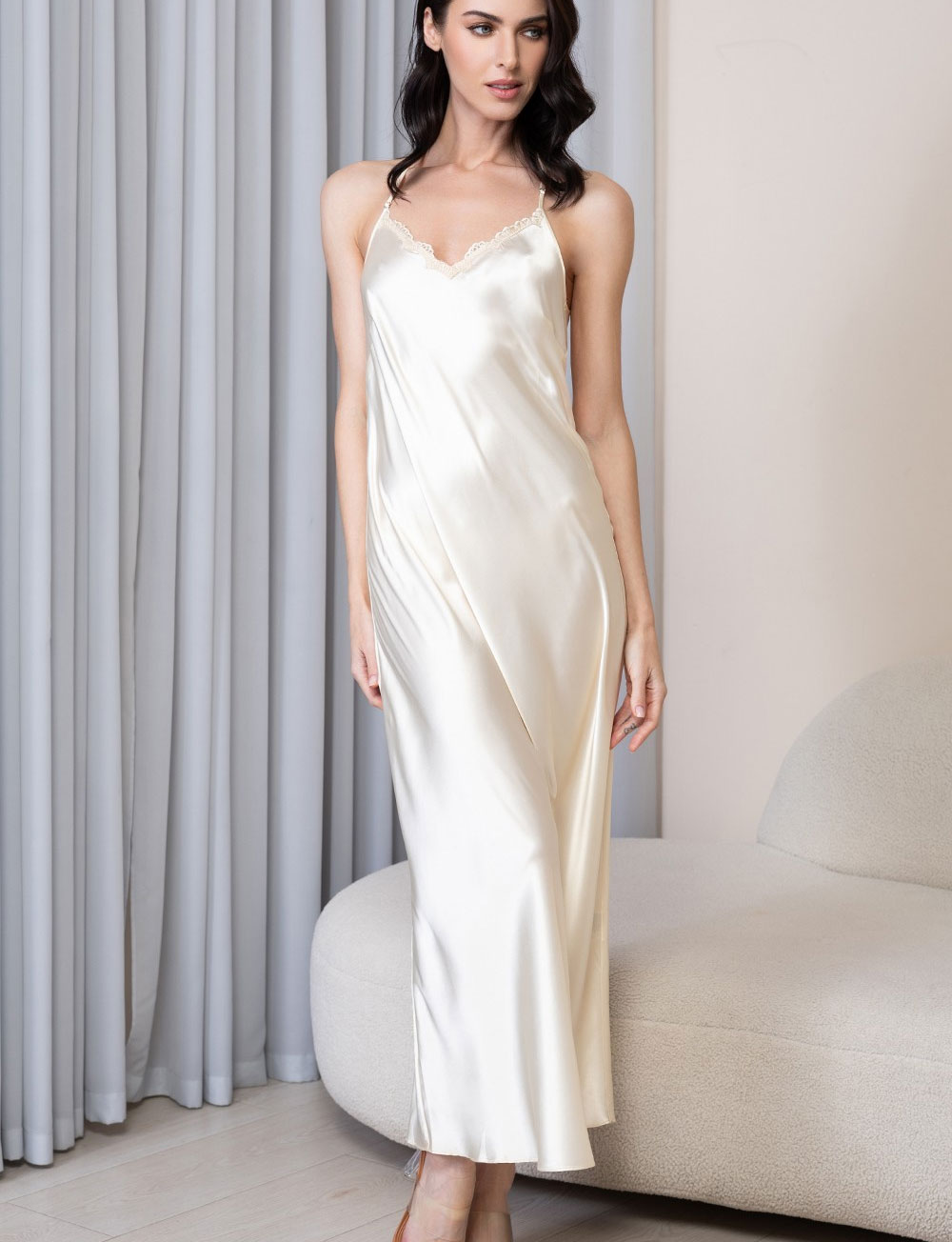 Длинная шелковая сорочка Mia-Amore MARJORY 3968 шампань