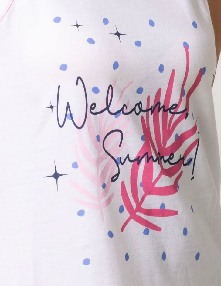 Ночная сорочка FASHION SUMMER SU42 от Sielei из мягкого трикотажного хлопка молочного цвета создана для максимальной свободы. Удобный фасон на широких бретелях. Акцентный принт на груди подчеркивает современный стиль, превращая эту модель в отличный выбор для дома, досуга и комфортного сна.