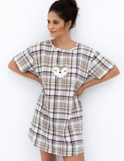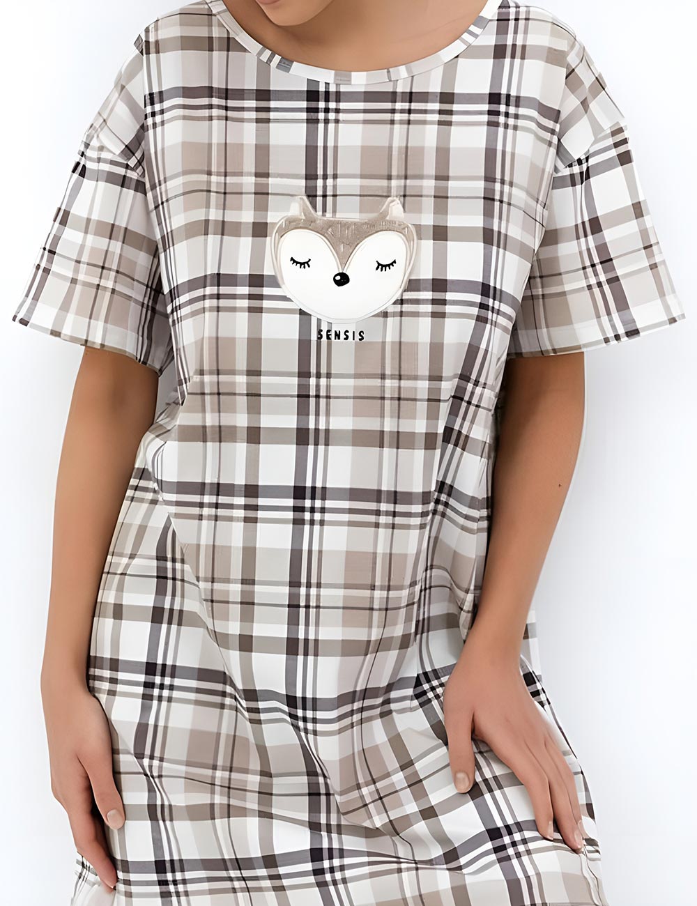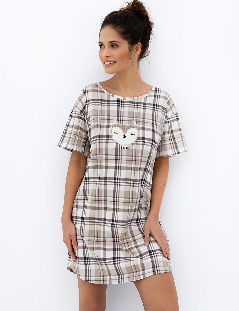 Ночная сорочка ADLEY от польского бренда Sensis изготовлена из мягкого хлопка с клетчатым узором в теплых бежевых оттенках. Она идеально подходит для комфортного сна или для расслабленного домашнего отдыха.