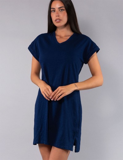Короткая синяя сорочка Sielei модель CITY CI28 из 100% фактурного хлопка идеальна для сна и отдыха. Модель с V-образным вырезом и коротким рукавом. «Дышащая» неоднородная ткань дарит прохладу и свободу движений, сочетая природный комфорт, исключительную мягкость и женственный лаконичный стиль для летних ночей.