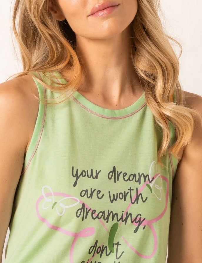 Сорочка женская Sielei FASHION SUMMER DR42 из мягкого хлопка в приятной зеленой расцветке идеальна для теплого сезона. Широкие бретели обеспечивают стабильную посадку, а молодежный принт добавляет образу стиль. Дышащая легкая ткань дарит комфорт, превращая эту модель в практичный вариант для отдыха.