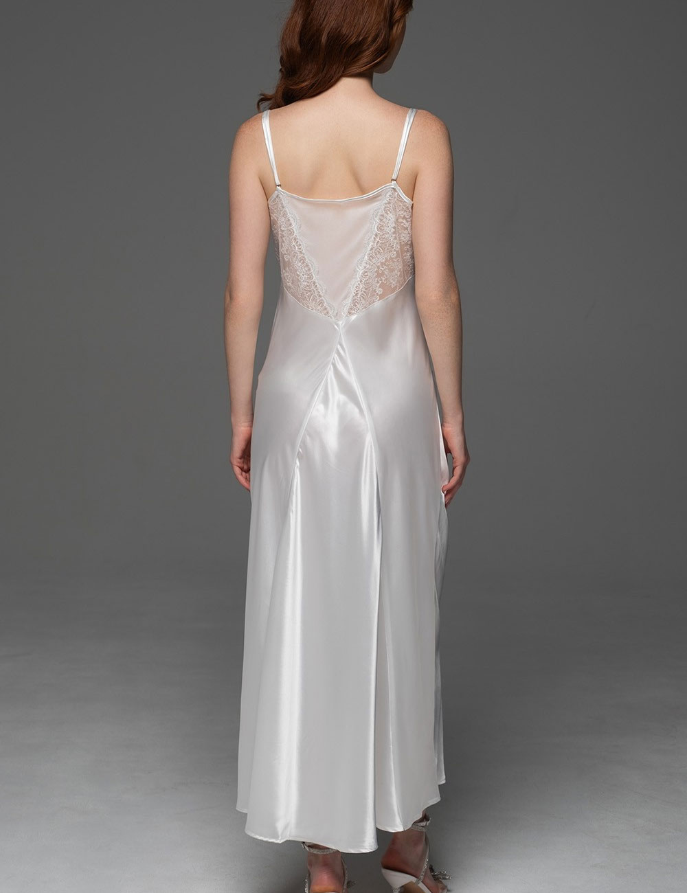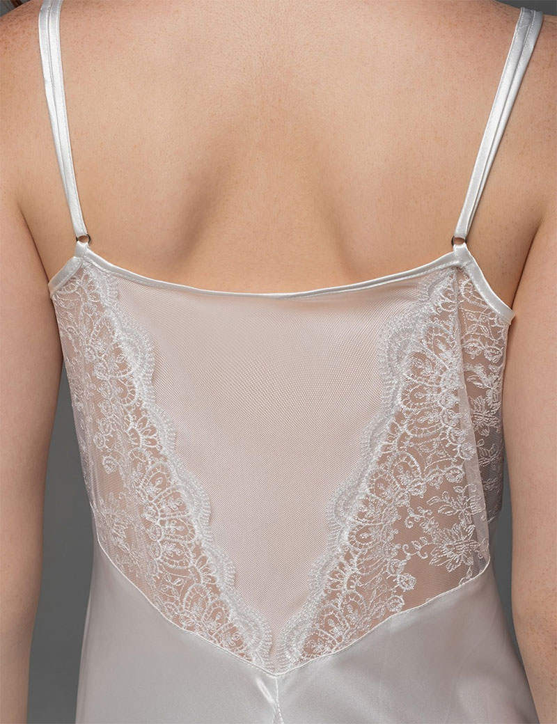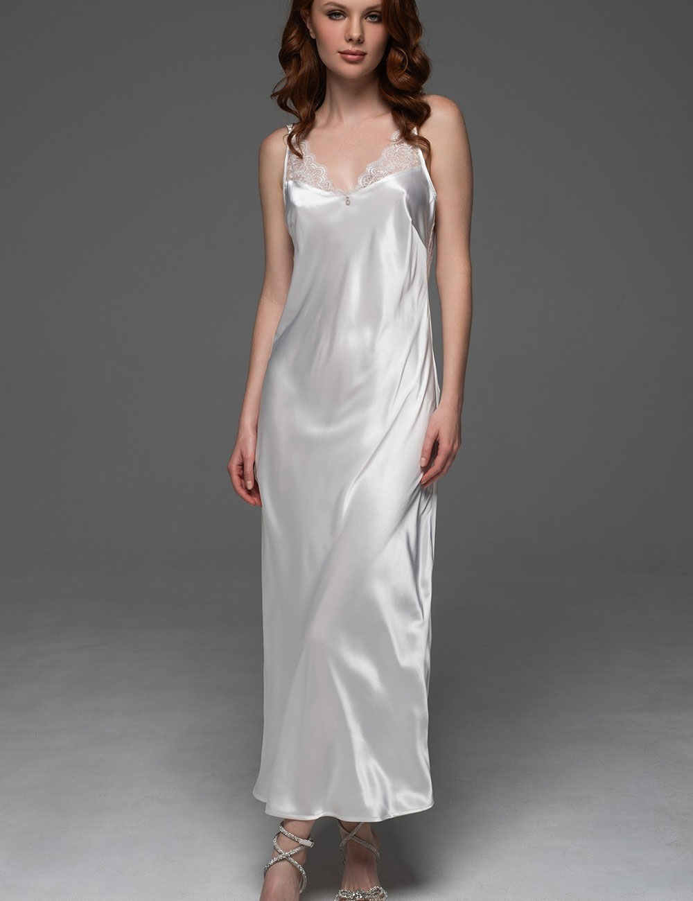 Длинная сорочка ADELAIDA 4704 от бренда Mia-Amore из смесового натурального шёлка в белом цвете – идеальна для сна или свадебных фотосессий, где вы сияете как невеста. Вставка из кружева и сетки на спинке добавляет загадочной прозрачности, подчёркивая вашу грацию. Мягкая ткань обволакивает как лёгкое облако, создавая атмосферу нежности.