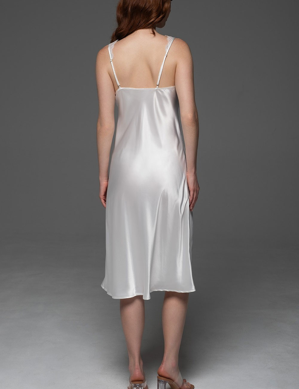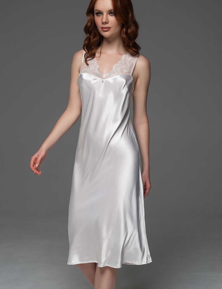 Ночная сорочка Mia-Amore ADELAIDA 4668 из смесового натурального шёлка в элегантном белом цвете – идеальный выбор для особых свиданий во время медового месяца, с ноткой невинной роскоши. Кружевной лиф и бретели делают образ неповторимым, подчёркивая вашу чистоту и шарм, что особенно ценится на фотосессиях.