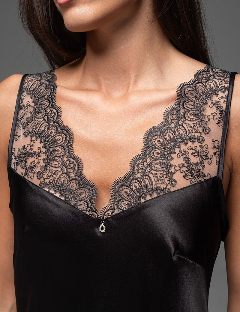 Элегантная чёрная сорочка ADELAIDA 4668 от бренда Mia-Amore из смесового натурального шёлка – прекрасный выбор для романтической ночи или особых моментов, когда хочется чувствовать себя неповторимой. Кружевной лиф и бретели подчёркивают женственность. Мягкая ткань как комфортная «вторая кожа» дарит эмоции нежности.