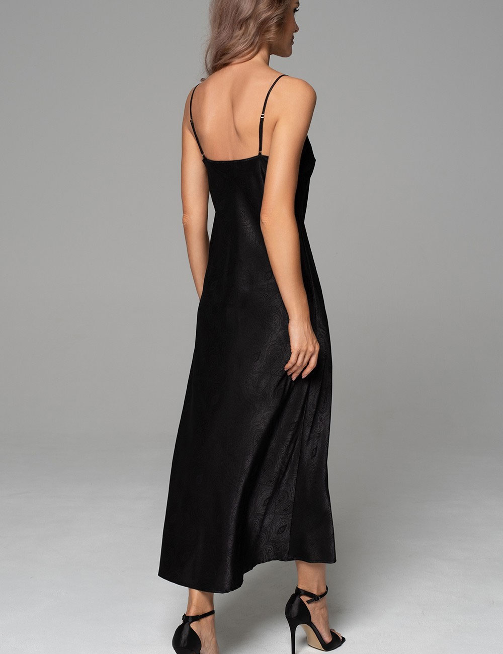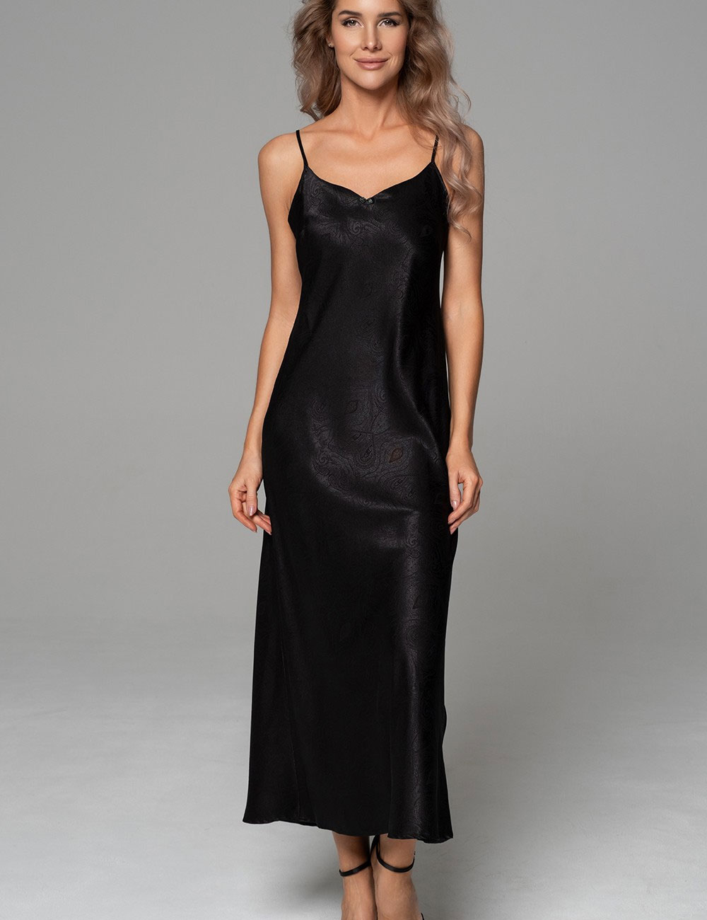 Длинная ночная сорочка на тонких бретелях Mia-Amore ANORA 4804 подчеркнет вашу естественную грацию, сочетая комфорт с утонченным стилем. Изготовлена в черном цвете из смесового натурального шелка с жаккардовым узором. Помогает расслабиться с заботой о себе.