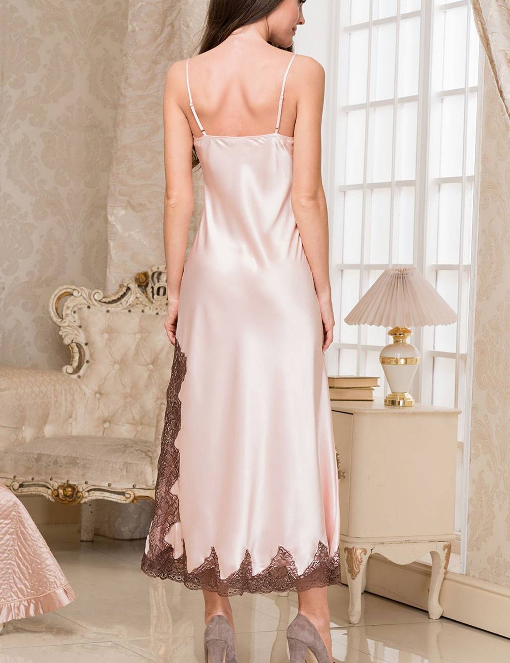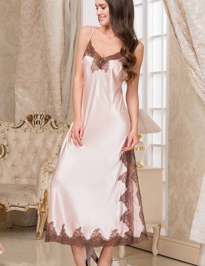 Длинная ночная сорочка из коллекции MARILIN пудрового цвета из смесового полотна с большим содержанием натурального шелка.