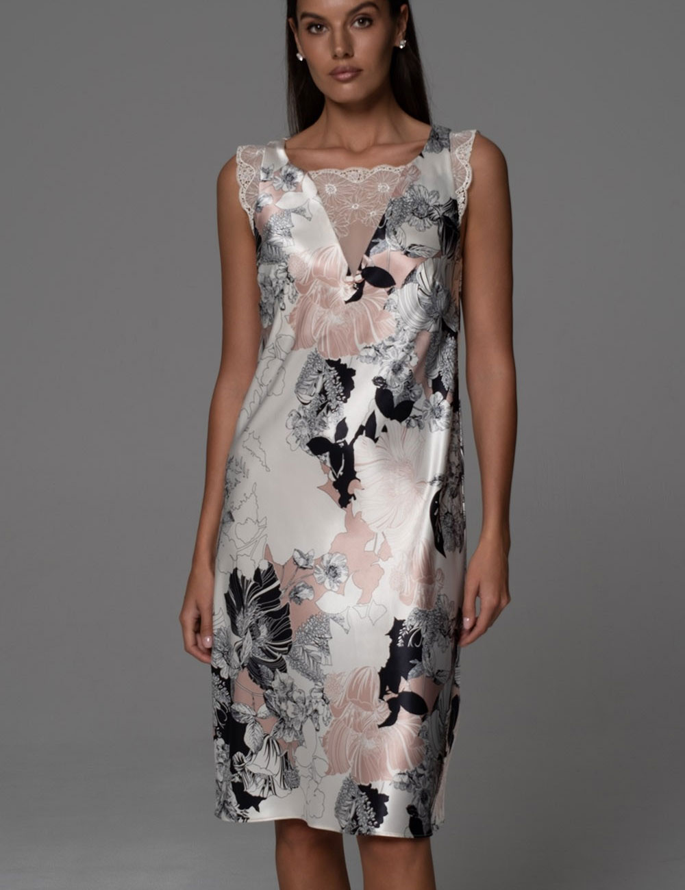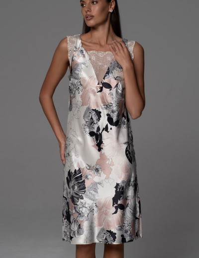 Ночная сорочка без рукавов Mia-Amore TRINITY модель 4767 — это воплощение роскоши: нежные кружевные вставки, натуральный смесовый шёлк с перламутровым блеском, фантазийный цветочный принт. Каждая деталь здесь шепчет о комфорте и романтике, как уютный вечер у камина, обещая сладкие сны и полный покой.