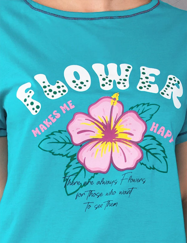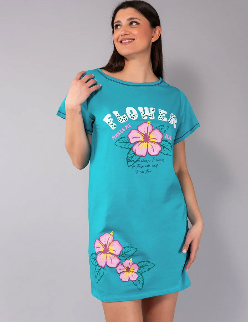 Короткая сорочка FASHION SUMMER OR41 от Sielei в ярком бирюзовом цвете выполнена из натурального хлопка для легких летних образов. Свободный крой и дышащая ткань дарят ощущение свежести, обеспечивая полный комфорт для сна и отдыха. Контрастные швы и цветочный принт добавляют динамику образу.