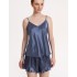 Женский комплект для сна Mia-Mella 8754 из коллекции JULIA CHARME — топ на тонких бретелях и короткие шортики с рюшами. Цвет «черника», мягкий искусственный шёлк с атласным блеском создают уют и настроение для сладких снов, словно ягодная сказка у вас на теле.