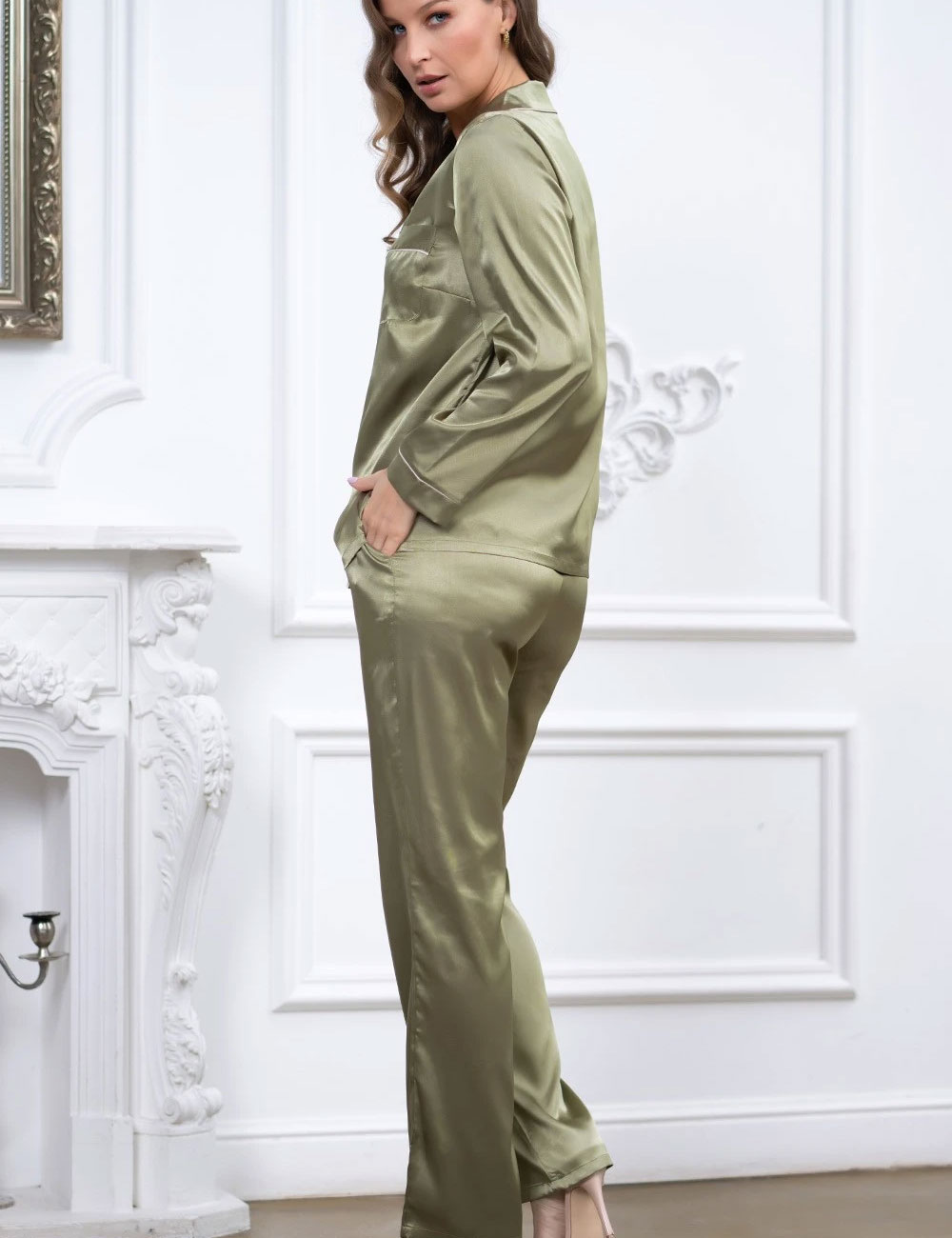 Атласная пижама тройка Mia-Mella JULIA 8735 оливковый