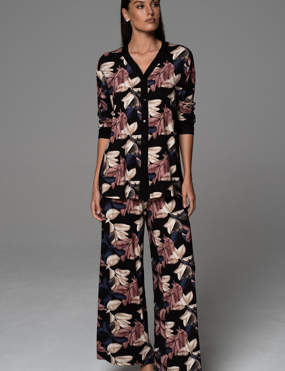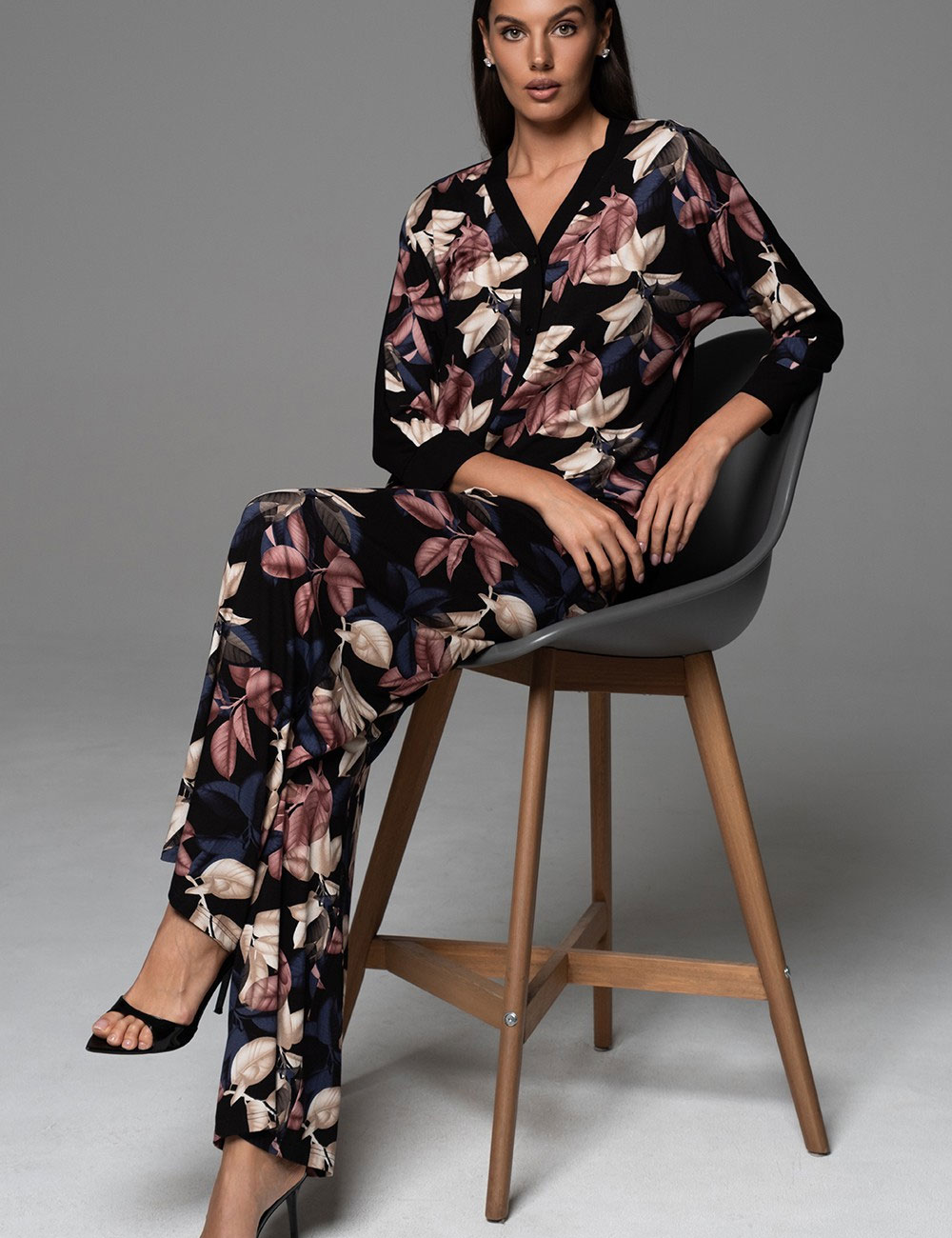 Комплект DAIANA 5576 от итальянского бренда Mia-Amore – с кардиганом на пуговицах и широкими брюками. Выполнен из вискозного трикотажа с ярким принтом и черной отделкой для уютного шика. Функциональный, дышащий и шикарный. Просто наденьте – и почувствуйте себя звездой своего домашнего мира!