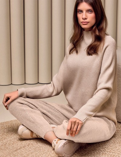 Домашний комплект Lormar 603901LU из коллекции BRITISH, выполненный в технике английского трикотажа. Лаконичный и изысканный дизайн в приятном бежевом оттенке ванили. Включает свитер с высоким воротником и зауженные штаны — мягкий, комфортный крой идеально подходит для домашнего отдыха.