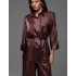 Замечтальная женская пижама от Mia-Amore, модель 7546 из коллекции ILONA, изготовлена из однотонного искусственного шелка на жаккардовой основе с вертикальными широкими полосами. В комплект входят рубашка на пуговицах, дополненная поясом и широкие брюки палаццо. Набор сочетает практичность и комфорт, идеально подходя для расслабленного ночного отдыха.