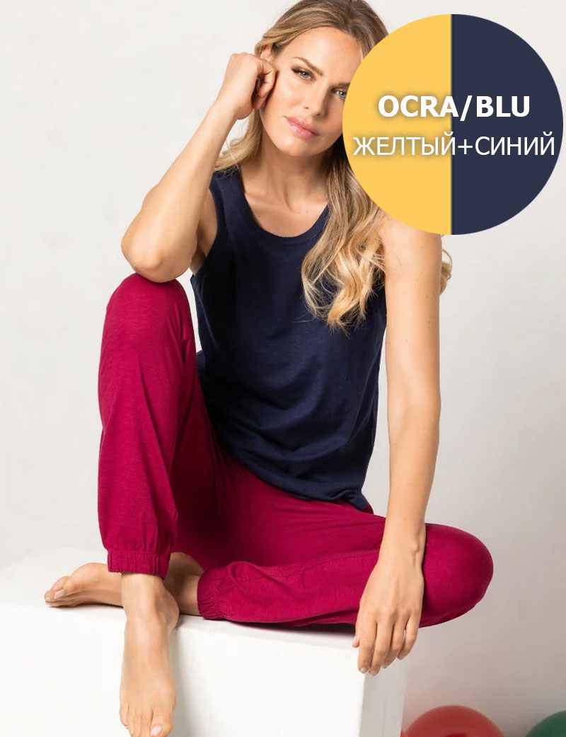 Пижама из хлопка майка+штаны Sielei CITY CI17 ocra/blu