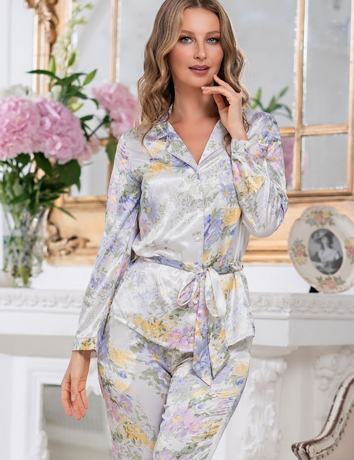Комплект-двойка LILIANNA 3258 от Mia-Amore в нежных пастельных тонах создан для сладкого сна. Состоит из рубашки с пуговицами и брюк из смесового натурального шелка с цветочным принтом, украшенным лиловым кантиком. Ткань мягкая и дышащая, обеспечивает комфорт и легкость пробуждения.