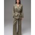 Пижама Mia-Amore 7566 из коллекции GENEVIEVA, состоящая из стильных брюк и жакета, выполнена из однотонного искусственного шелка в актуальной расцветке какао. Жаккардовый анималистический рисунок придаёт образу загадочность, а мягкий шелковистый атлас обеспечивает комфорт, делая пижаму идеальным выбором для домашнего отдыха.