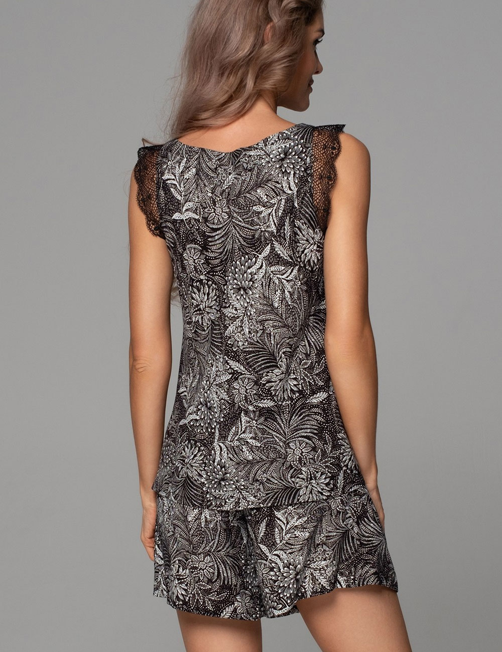 Комплект Mia-Amore JOLINE модель 5585 из топа и шорт станет вашим любимым спутником в мире сна. Мягкая тканая вискоза в угольно-черном цвете притяная и дышащая для тела, а контрастный принт добавляет выразительности. Идеально подходит для расслабляющего отдыха или утреннего кофе.