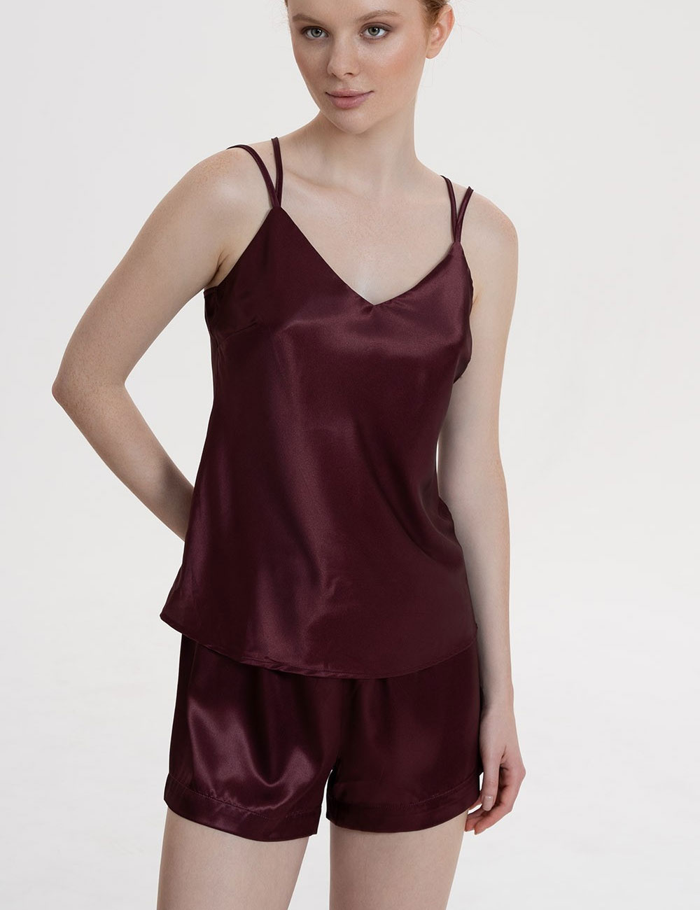 Шёлковая пижама с шортами Mia-Amore LILIROSE 4592 винный